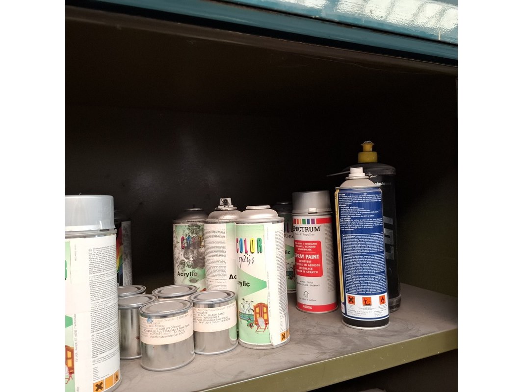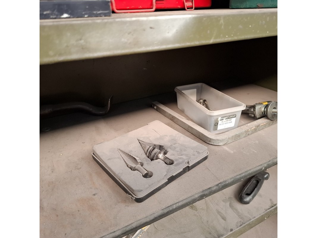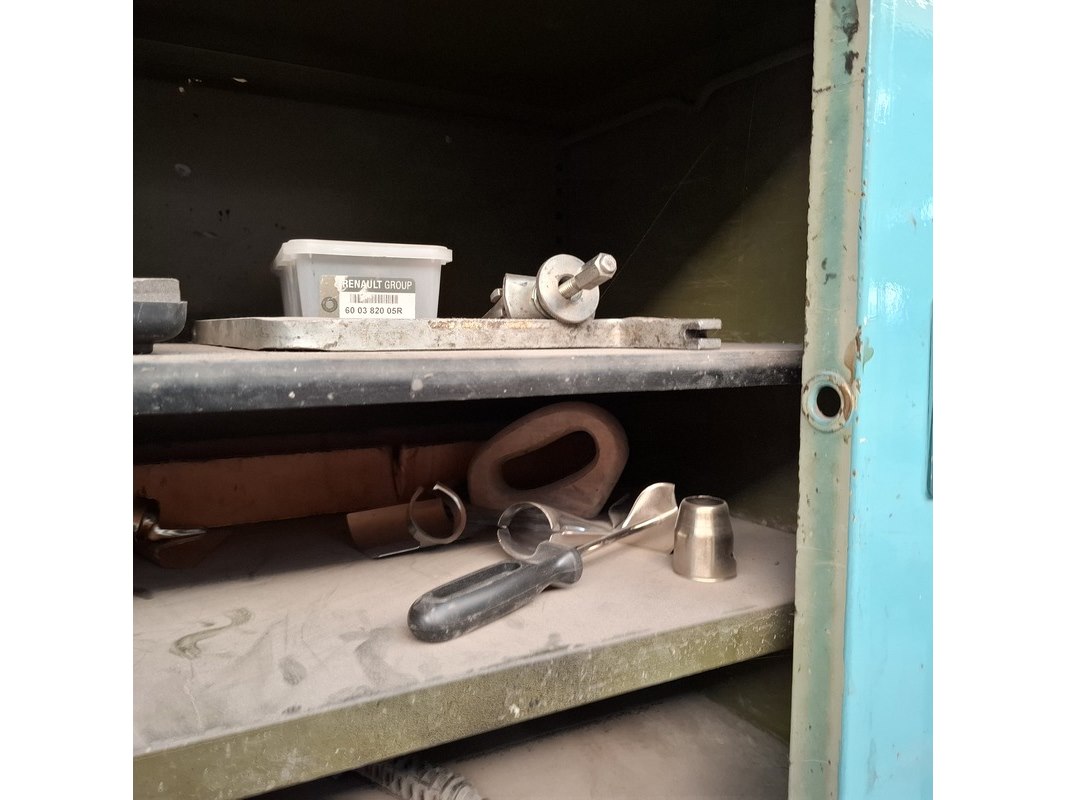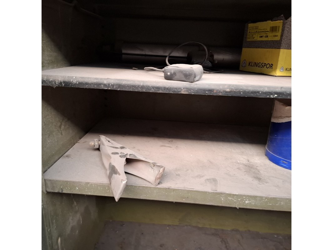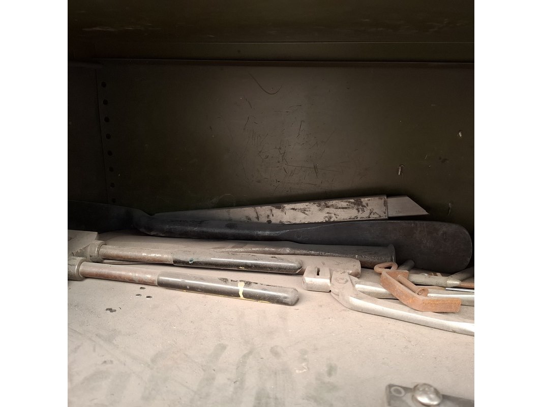 Product: Schuifdeurkast met inhoud Materiaal: metaal Afmeting: hxbxd ca. 195x201x51cm