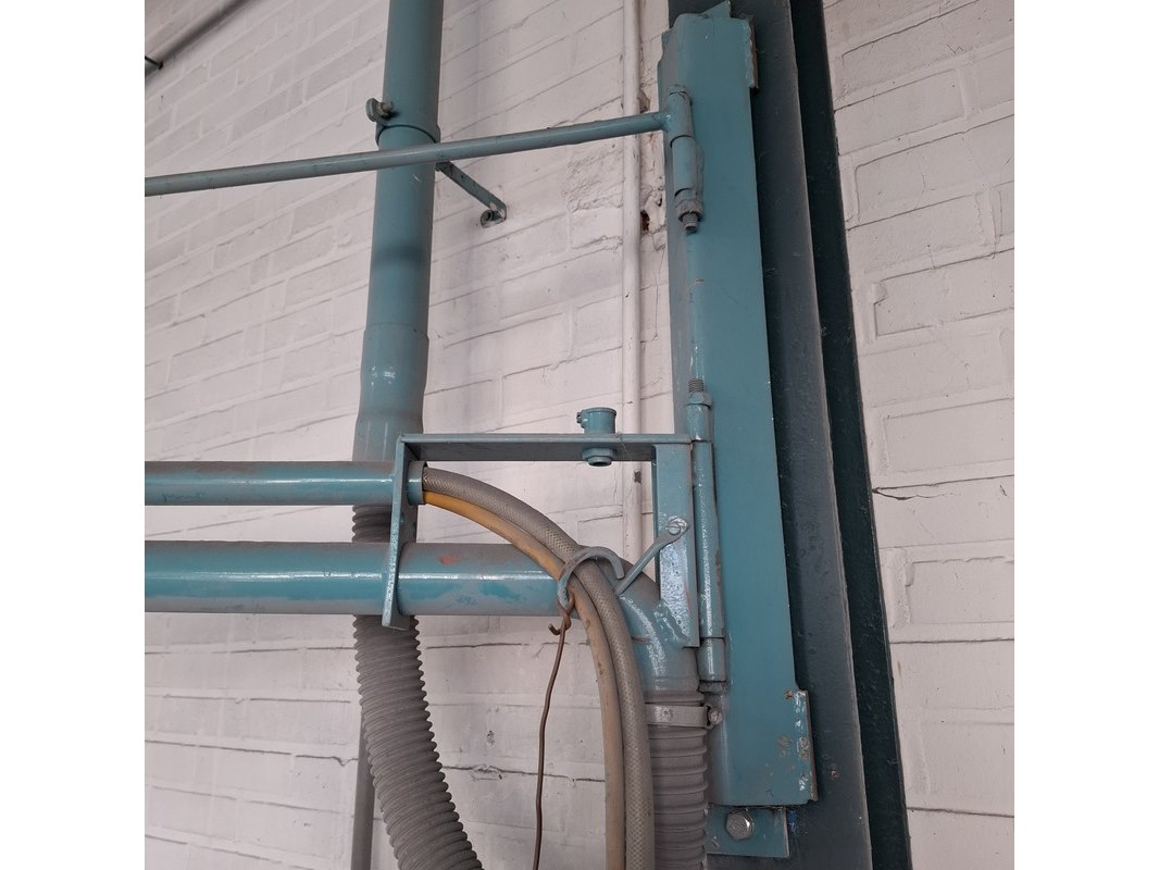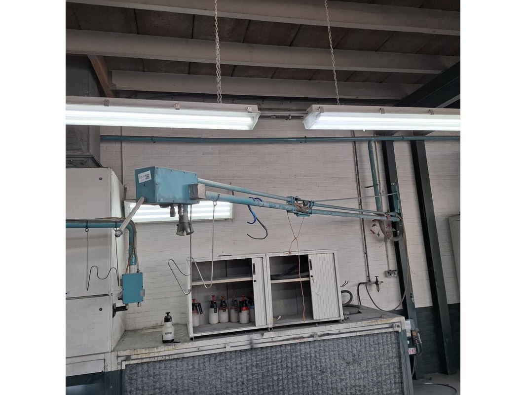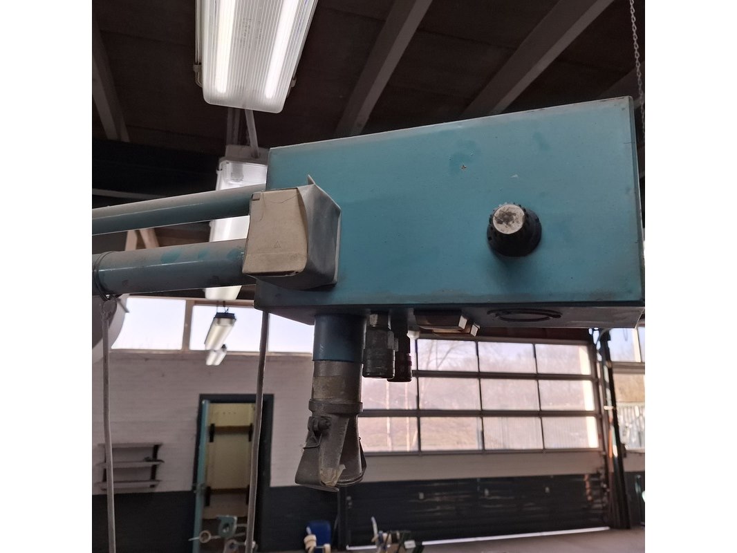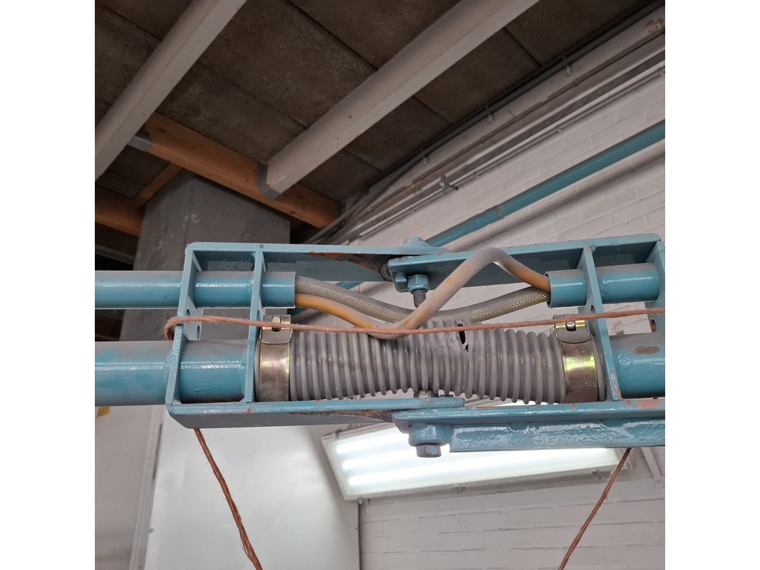 Product: Zwenkarm v.v. lucht en 230V aansluiting Afmeting: lengte arm ca. 443cm Specificaties: Let op! Kavel hangt op ca. 260cm hoogte Stroom en lucht dienen vakkundig afgesloten te worden