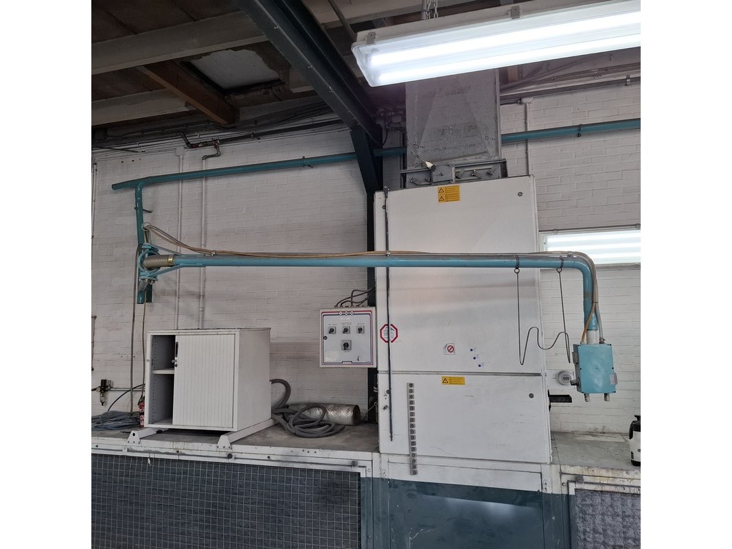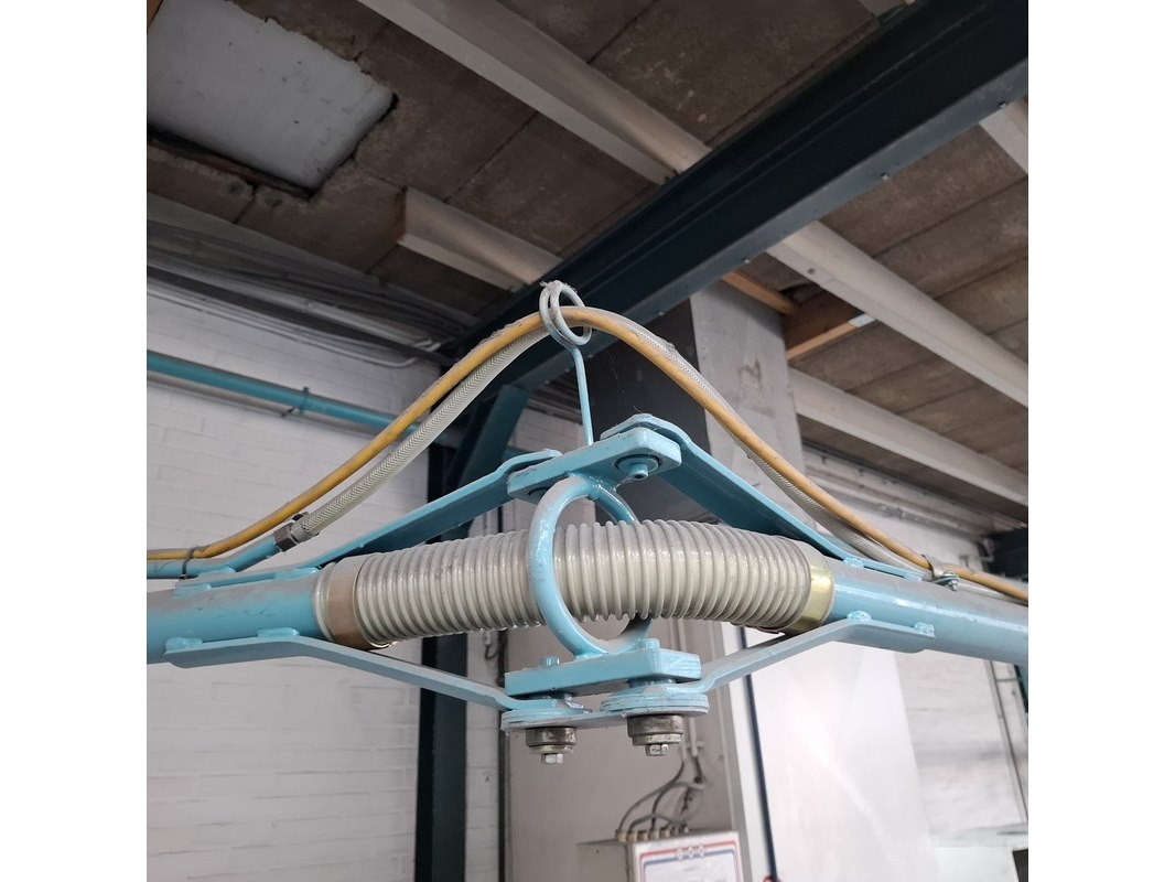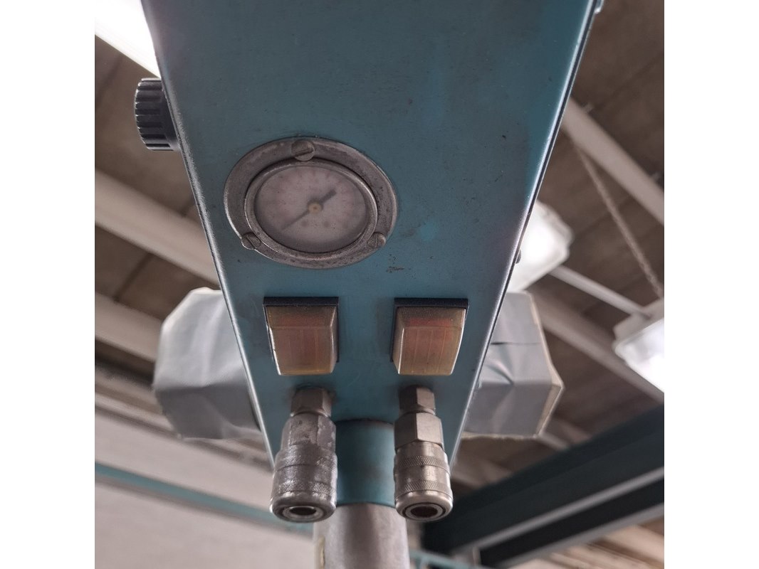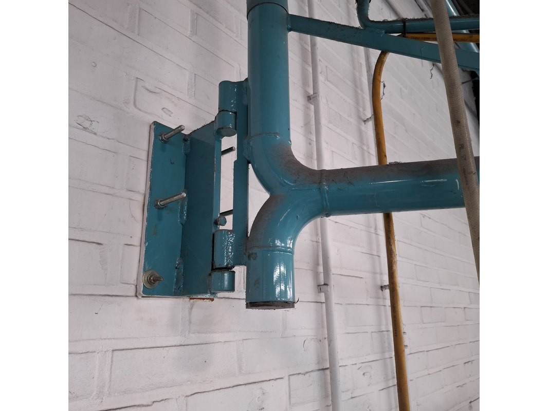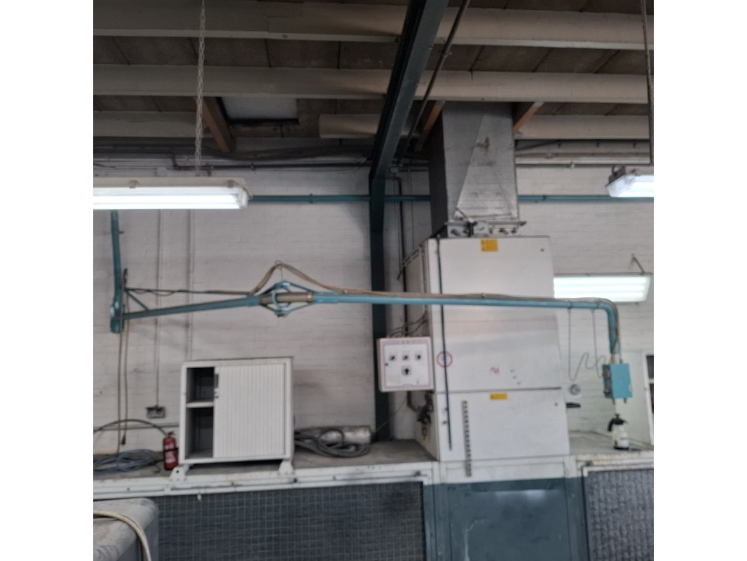 Product: Zwenkarm v.v. lucht en 230V aansluiting Afmeting: lengte arm ca. 443cm Specificaties: Let op! Kavel hangt op ca. 260cm hoogte Stroom en lucht dienen vakkundig afgesloten te worden