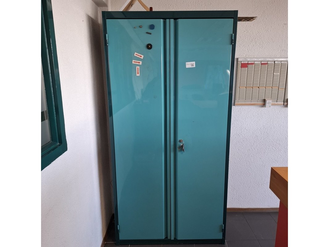 Product: Kantoorkast met inhoud Materiaal: metaal Afmeting: hxbxd ca. 198x100x50cm Specificaties: inclusief sleutel