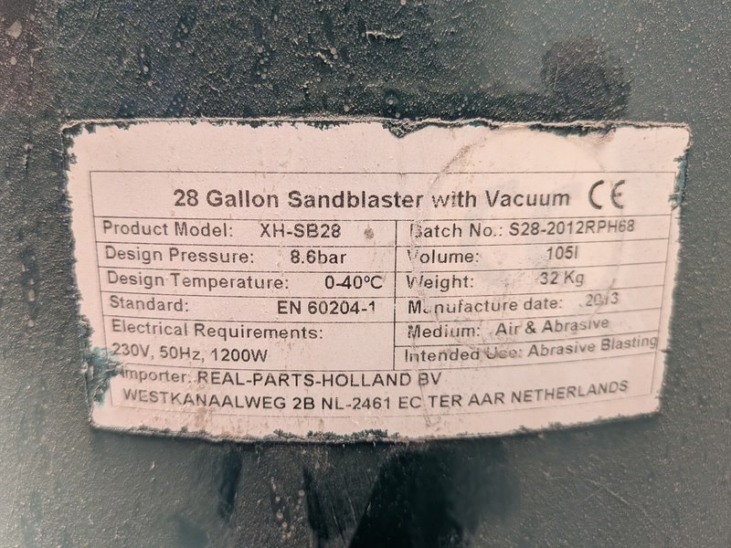 Product: Straalcabine met zandblazer Conditie: gebruikt Specificaties: Straalcabine 230V Afmeting hxbxd ca. 167 x 150 x 75 cm Zandblazer type: XH-SB28 Bouwjaar: 2013 230V 1200W Afmeting hxd ca. 175 x 36cm Wandcontactdoos defect