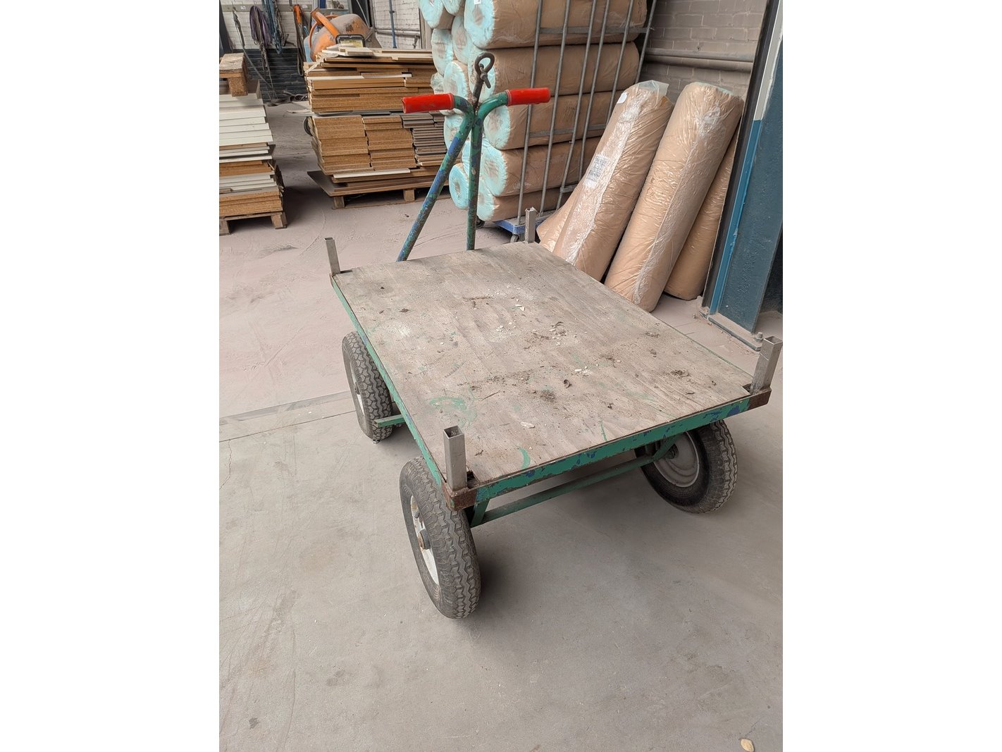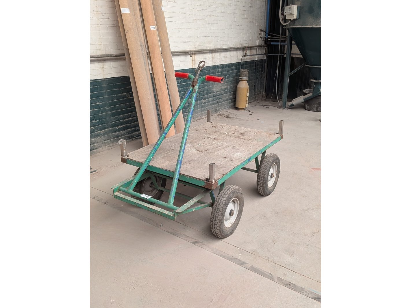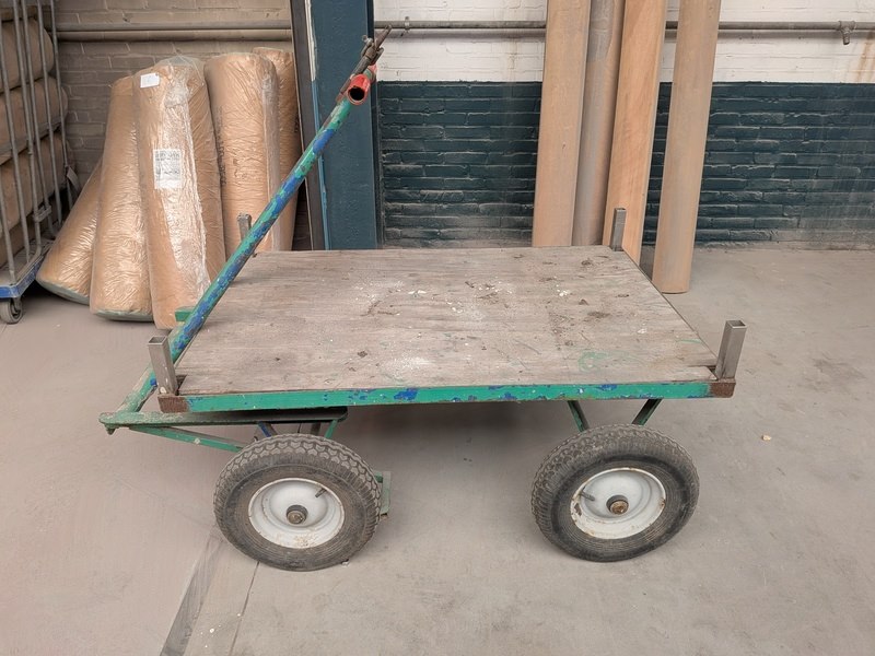 Product: Transportwagen op luchtbanden Afmeting: lxb ca. 140 x 80 cm Conditie: gebruikt