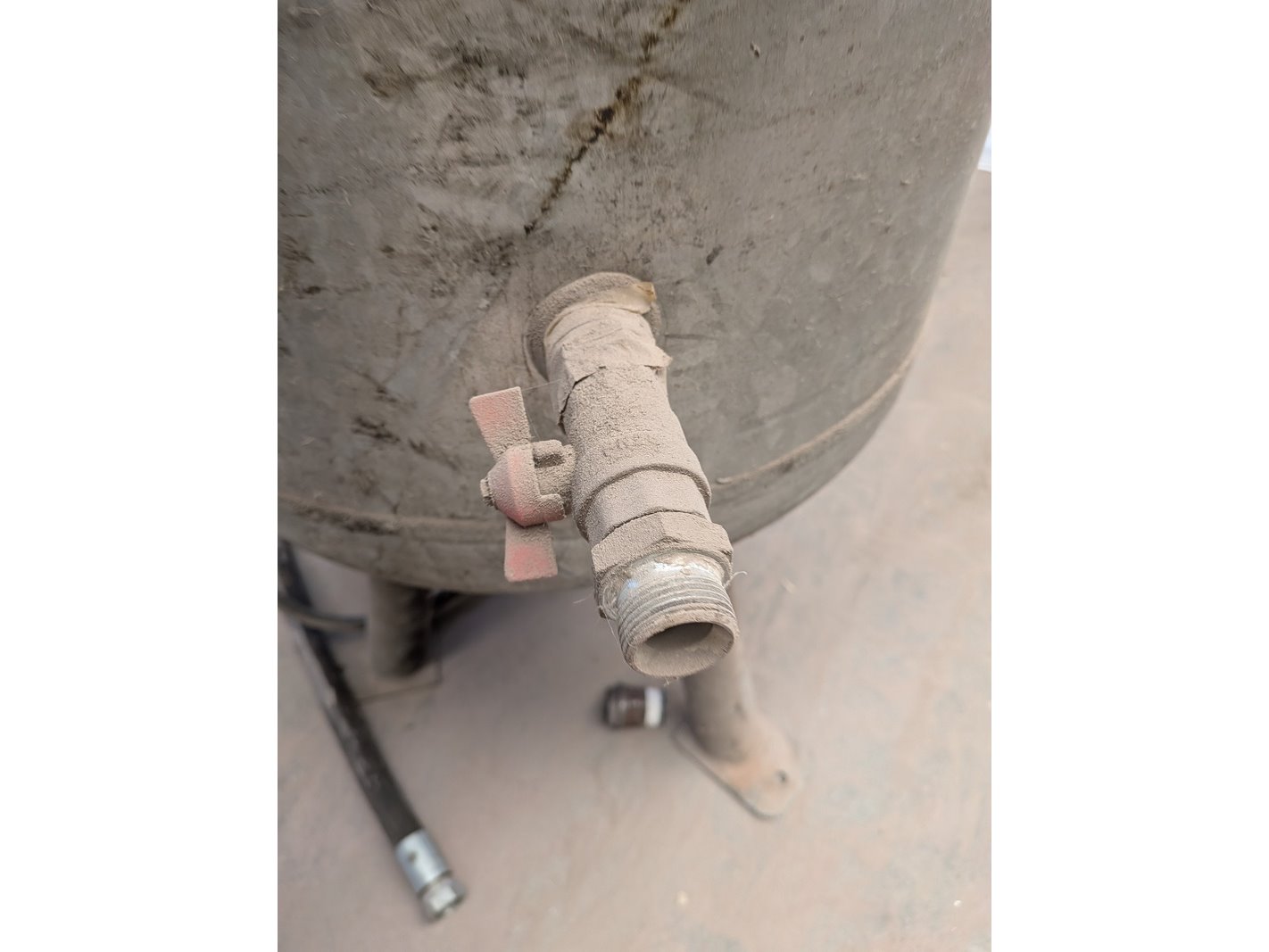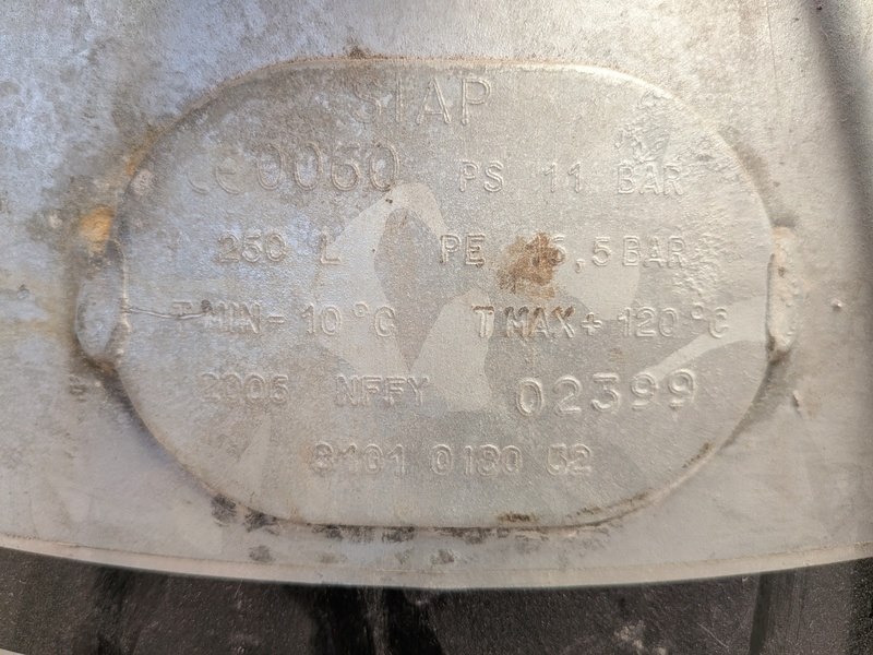 Merk: Atlas Copco Product: Buffertank Afmeting: 250L, hoogte ca. 190 cm, diameter ca. 50 cm Conditie: gebruikt