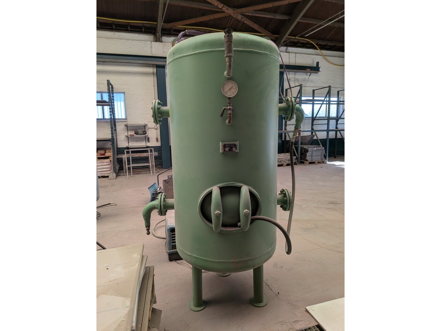 Merk: lohenner & co Product: Buffervat Materiaal: Metaal Afmeting: 1000 liter, hoogte ca. 220 cm, diameter ca. 130 cm BouwJaar: 1977 Conditie: gebruikt