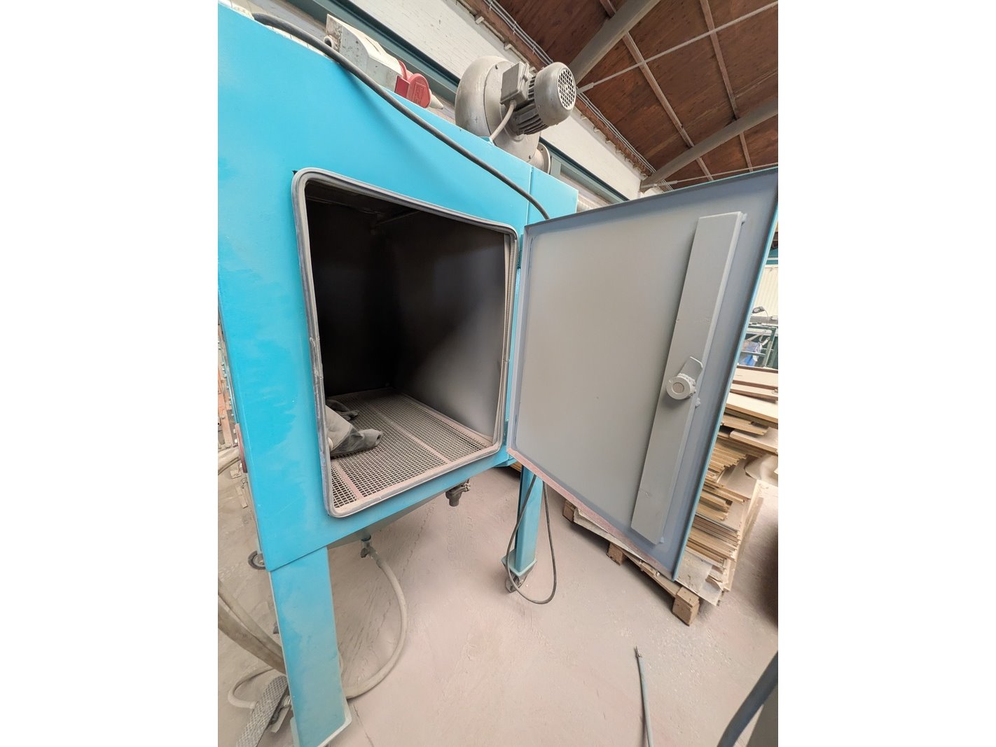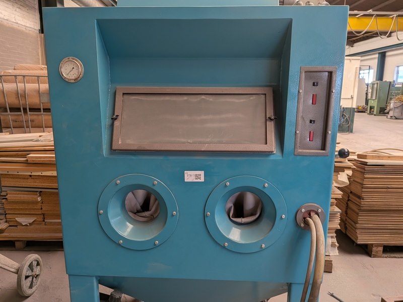 Product: Straalcabine Afmeting: hxbxd ca. 215 x 100 x 100cm Conditie: gebruikt Specificaties: 400V