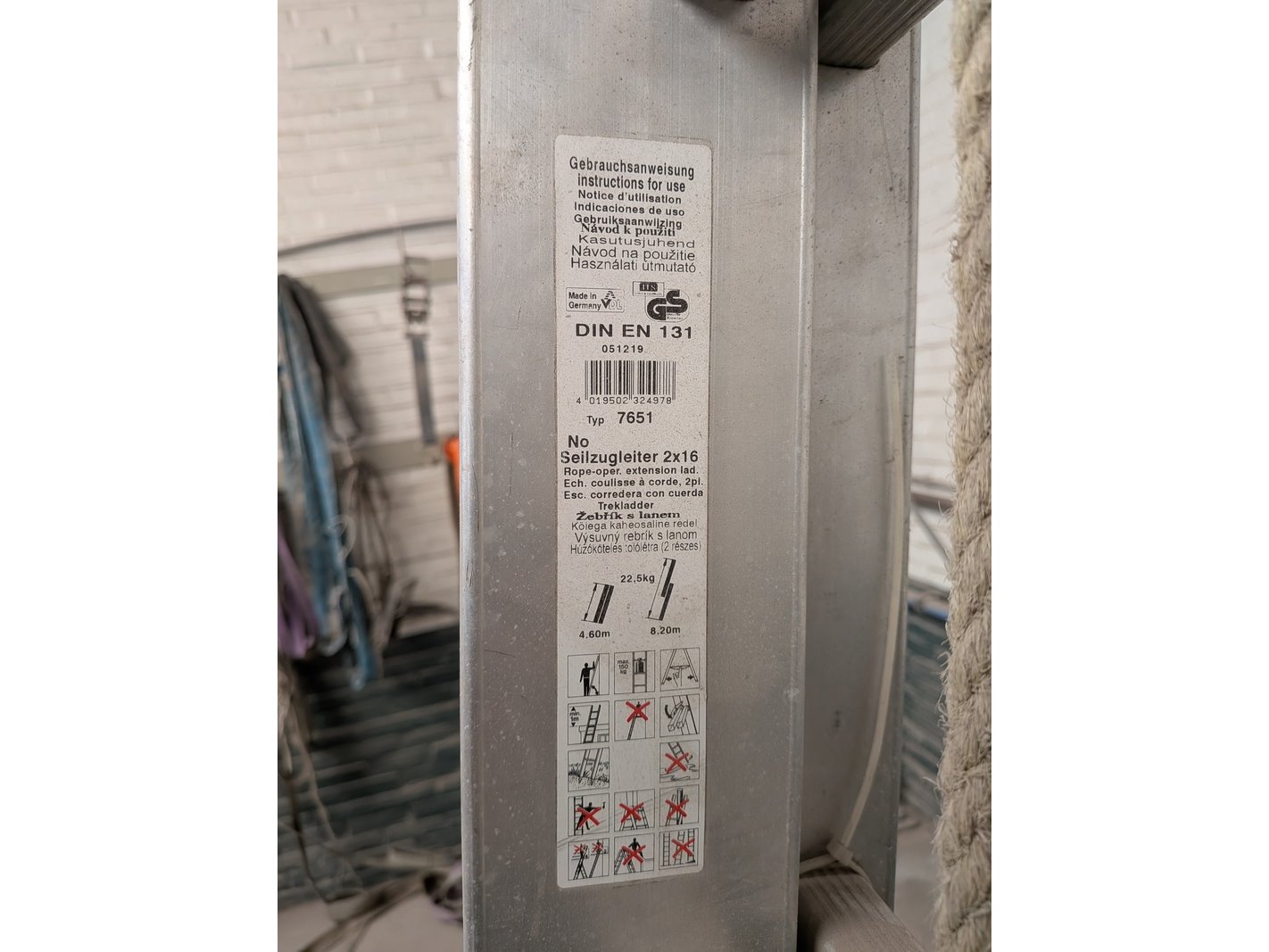 Product: 2-delige schuifladder met gevelrol 2x16 Conditie: gebruikt Specificaties: Voorzien van optrekinrichting