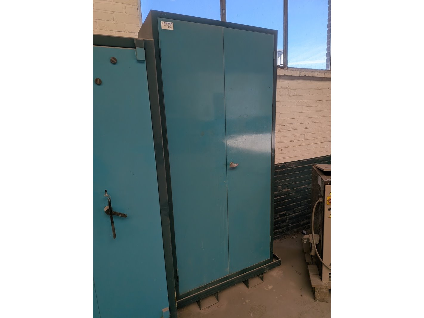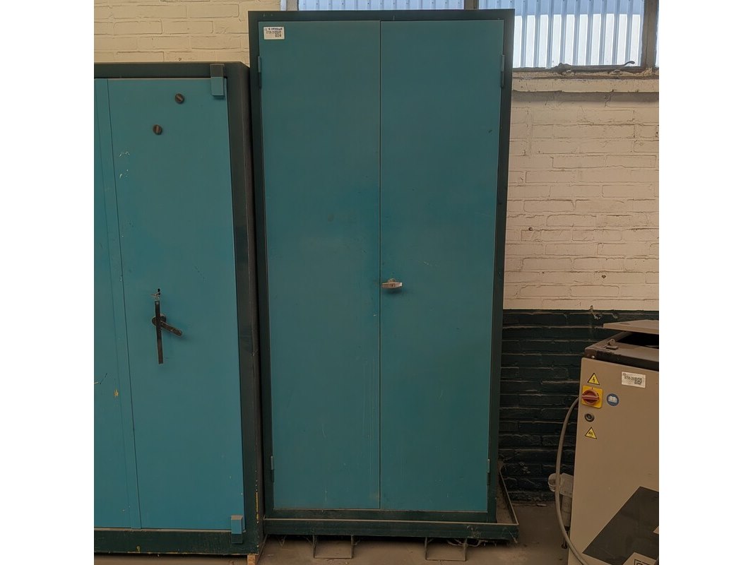 Product: Werkplaatskast met inhoud Materiaal: metaal Afmeting: hxbxd ca. 198 x 92 x 44 cm Conditie: gebruikt Specificaties: V.v. heftrucksledes