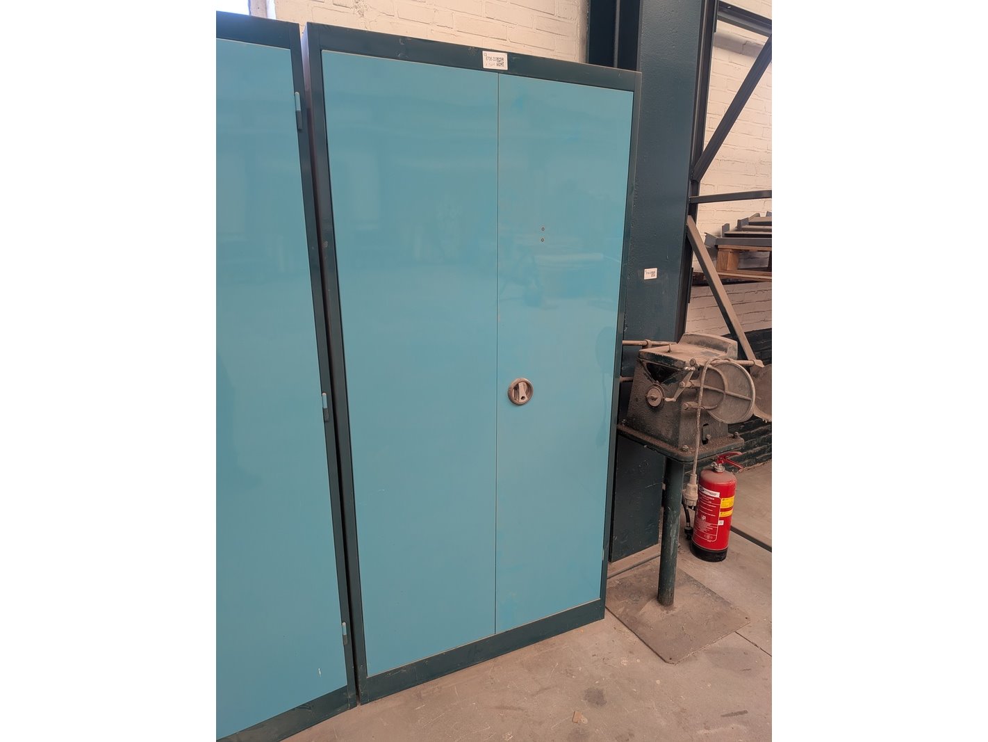 Product: Werkplaatskast met inhoud Materiaal: metaal Afmeting: hxbxd ca. 195 x 95 x 46 cm Conditie: gebruikt Specificaties: excl. Sleutels