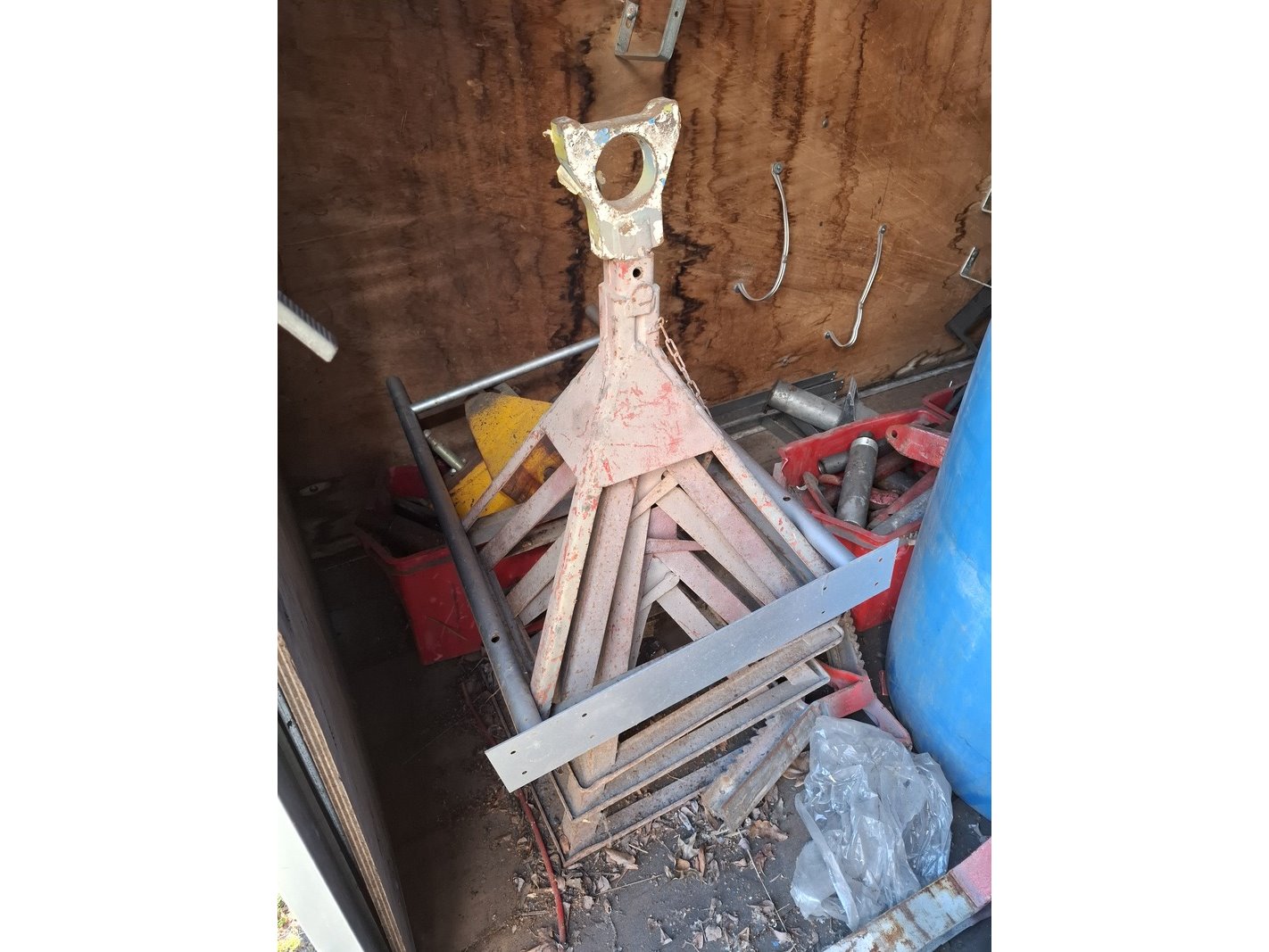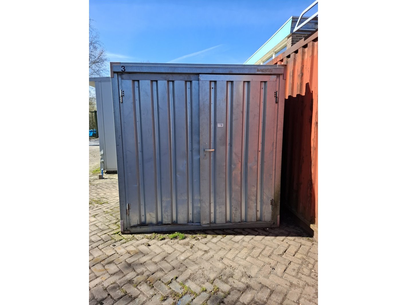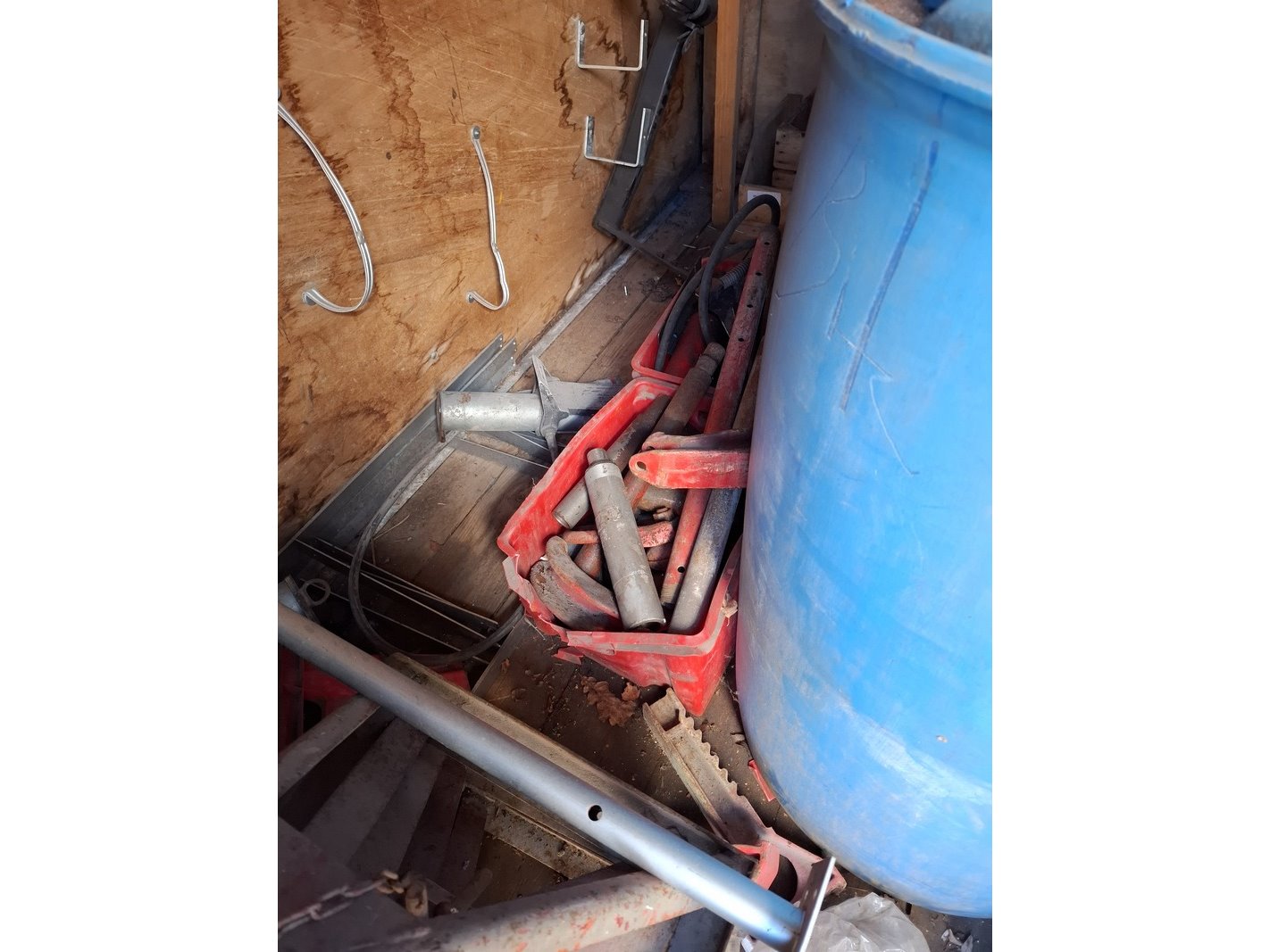 Product: Materiaal container Afmeting: lxbxh ca. 295 x 218 x 216 cm Conditie: gebruikt Specificaties: Inhoud bestaande uit o.a. metalen profielen, auto onderdelen, trekhaak unit, stempel materiaal, etc.
