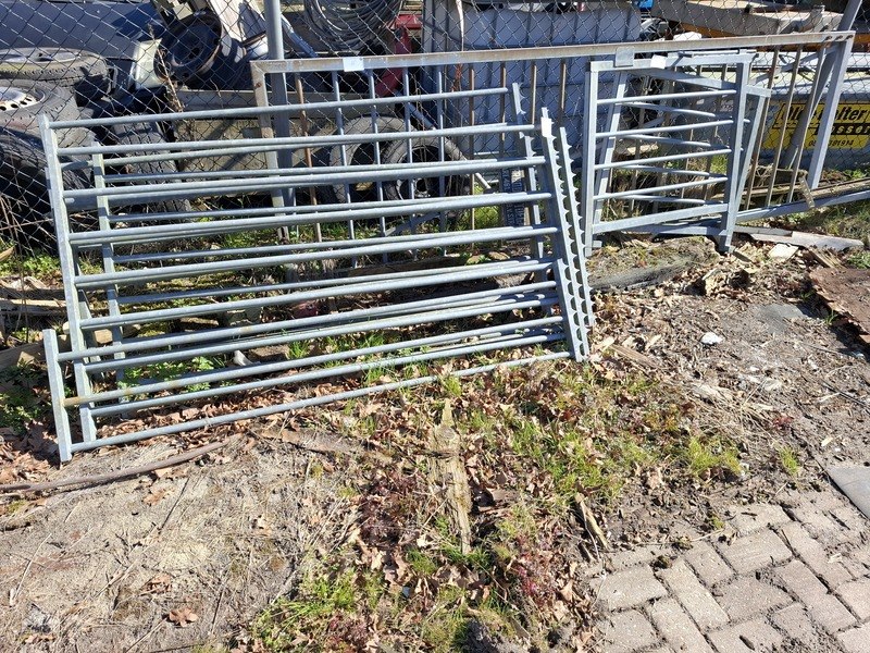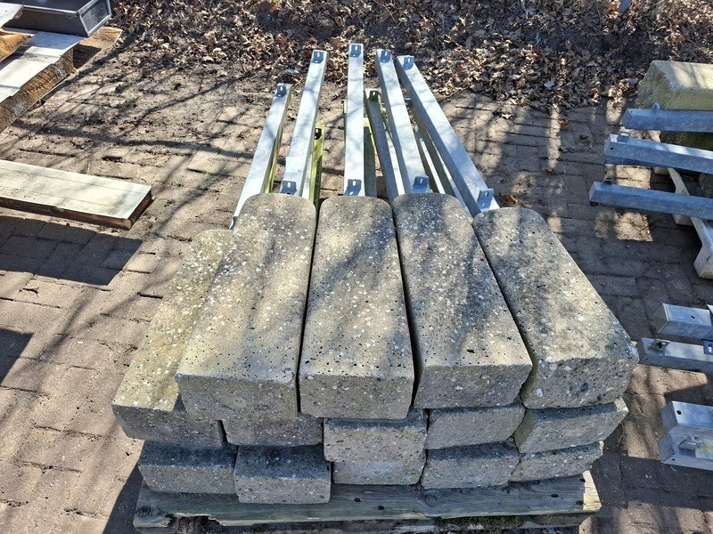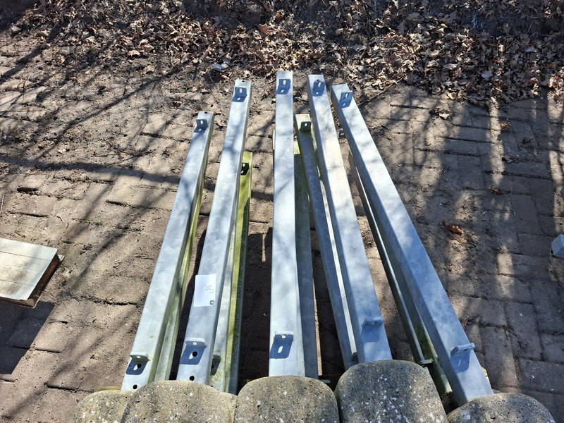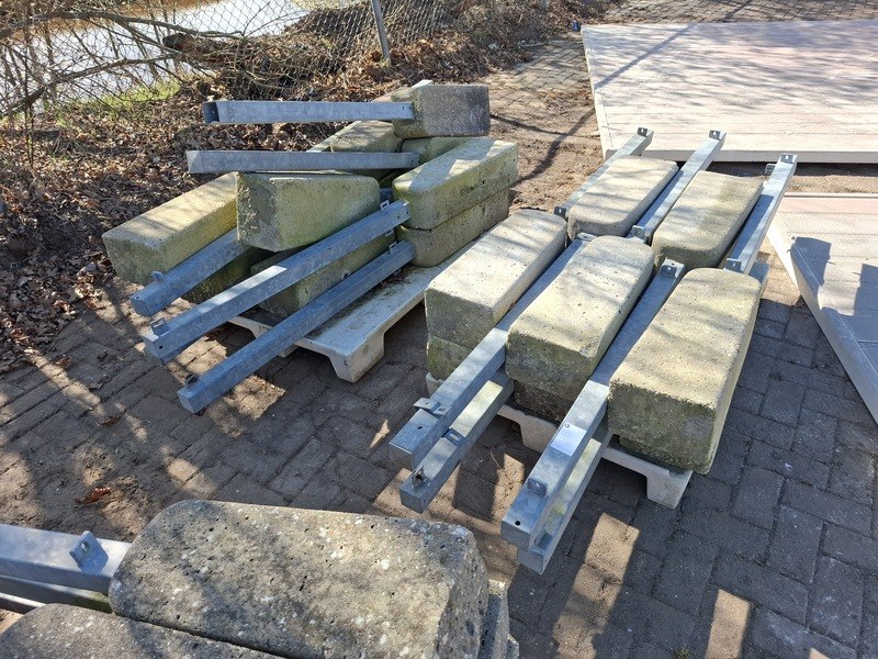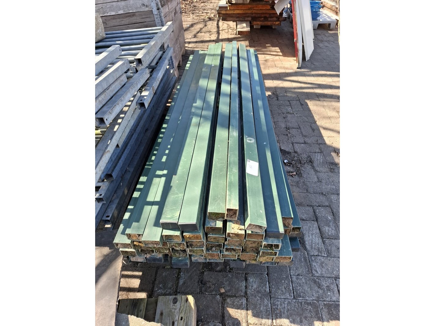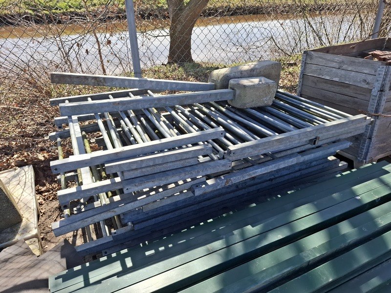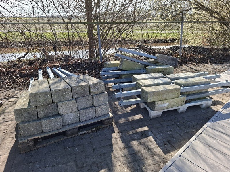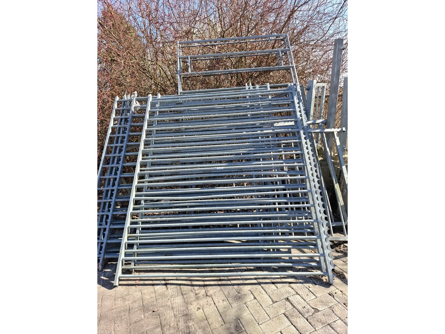Product: Partij hekwerk Conditie: gebruikt Specificaties: Bestaande uit o.a.: Ca. 39x staander met betonnen poer, lengte ca. 170 cm Partij staanders (groen), lengte ca. 193 cm Diverse delen hekwerk, hart op hart hoogte ca. 90 cm 8x hekdeel, hoogte ca. 190 cm, breedte ca. 225 cm, Inclusief imperiaal, poort