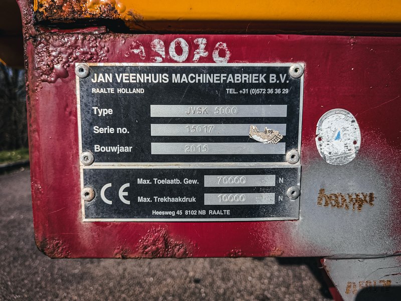 Merk: JANVEENHUIS Product: Land- of bosbouwkipper BouwJaar: 2015 Conditie: Gebruikt Specificaties: Basiskenmerken Kenteken: LRH-84-T Serienummer: 15017 Datum eerste toelating: 30 juni 2015 Technische gegevens Max. toelaatbaar gewicht: 70.000 N Max. trekhaakdruk: 10.000 N