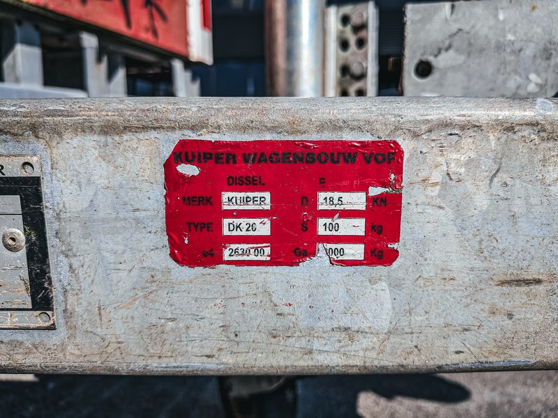 Merk: KUIPER Product: Schaftwagen BouwJaar: 2009 Conditie: Gebruikt Specificaties: Basiskenmerken Kenteken: 19-WD-PN Goedkeuringsnummer: KUPA 2004 C Identificatienummer: XL9AT200209090606 Datum eerste toelating: 15 april 2009 Maten & Gewichten Voertuig lengte: 5.740 mm Voertuig breedte: 2.260 mm Wielbasis: 800 mm Massa rijklaar: 1.225 kg Max. massa voertuig: 2.000 kg Laadvermogen: 775 kg