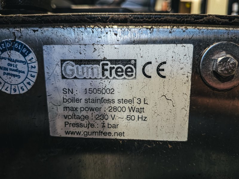 Merk: GumFree Product: kauwgomverwijderingsmachine Conditie: Gebruikt Specificaties: Serienummer: 1505002 Technische gegevens (GumFree Unlimited machine) Voltage: 230 V Stoomdruk: 7 bar Werktemperatuur: 80 °C Afmetingen (LxBxH) : 470 x 310 x 300 mm Temperatuurbegrenzing: 170 °C Boilertemperatuur: 165 °C Opgenomen vermogen: 2,80 kW Drukbegrenzing: 8 bar Gewicht: 18,2 kg Technische gegevens (GumFree Combitrolley) Gewicht: 36 kg Wielen: 2 bok- en 2 zwenkwielen Afmetingen (LxBxH) : 1.300 x 650 x 1.100 mm Bovengenoemde specificaties kunnen mogelijk lichtelijk afwijken