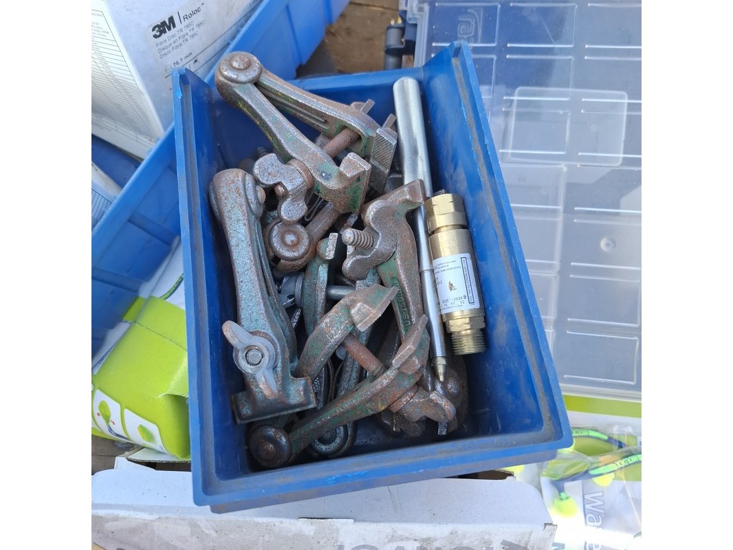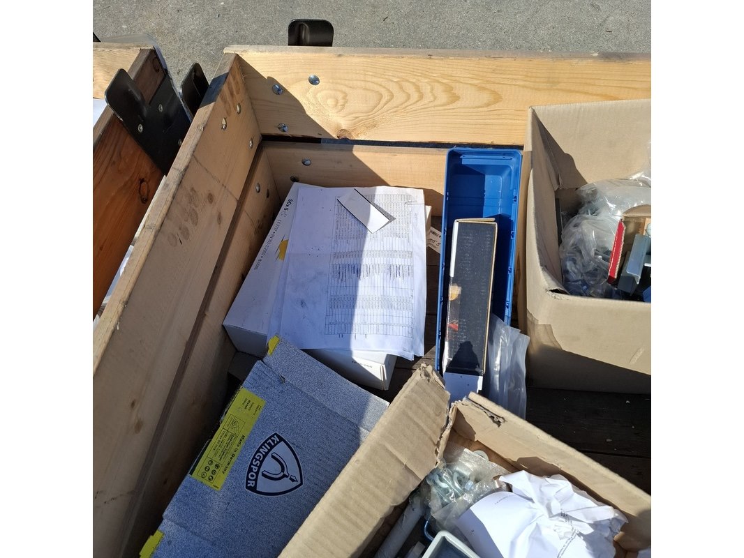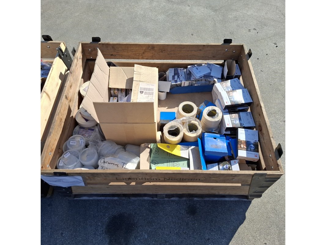 Product: (NS materiaal) Partij diversen Conditie: Gebruikt Specificaties: Bestaande uit o.a.: • Laskap beschermingsglas • Diverse soorten tape • Plastic deksels • Diverse soorten schuurpapier • Bevestigingsmateriaal • Bouten en moeren • Werkhandschoenen • Gehoorbescherming
