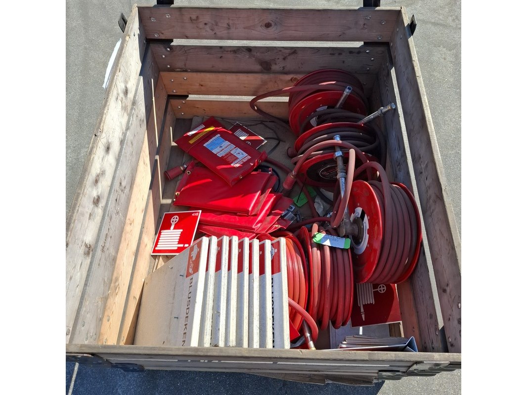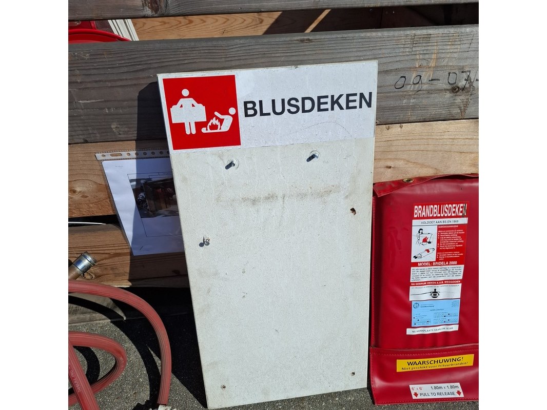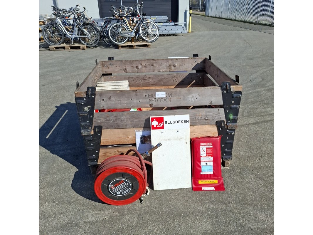 Product: (NS materiaal) Brandhulpmiddelen Conditie: Gebruikt Specificaties: Bestaande uit: • 5x Brandslanghaspel • Diverse blusdekens • 8x Blusdeken bord