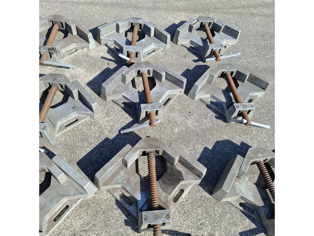 Merk: Bessey Product: (NS materiaal) 9x Metalen hoekspanner Conditie: Gebruikt Specificaties: Technische gegevens Spanwijdte: 2 x 90 mm Max. doorgang: 60 mm Gewicht: 3,8 kg