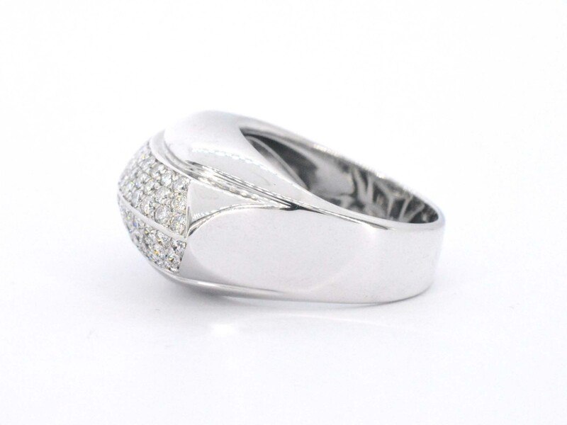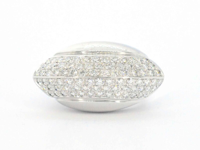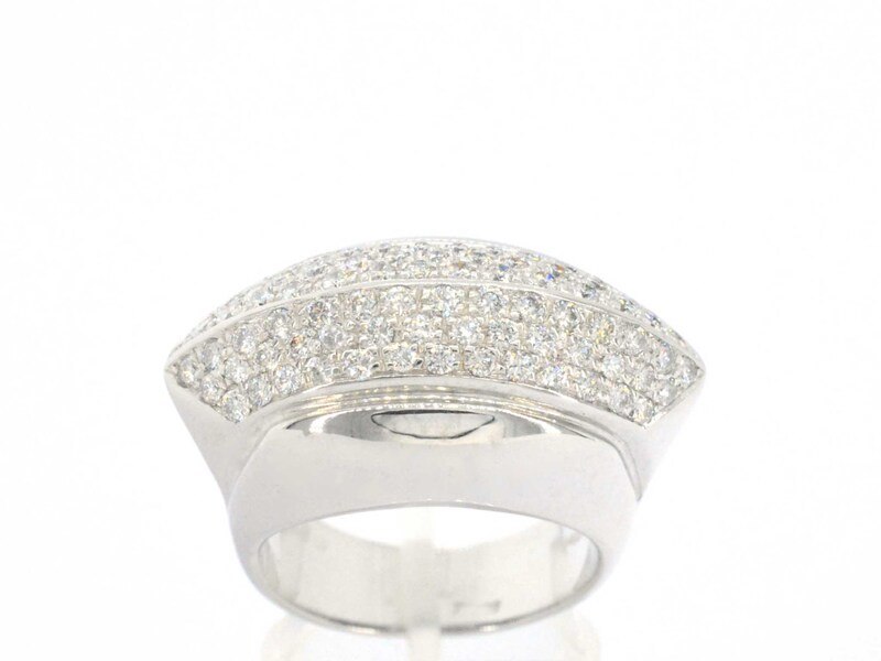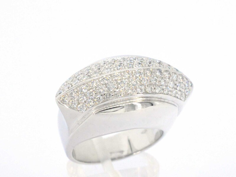 Product: Designer ring van goud met diamanten Specificaties: Diamant: Natuurlijk Aantal: 84 stuks Slijpvorm: Briljant geslepen Gewicht (carat): 2.30 carat Kleur: F Zuiverheid: VS Slijpkwaliteit: Zeer mooi Juweel: Ring Gewicht: 19.3 gram Ringmaat (op maat gemaakt*): 56 (17.75 mm) Materiaal: 18K goud (750) Conditie: Zo goed als nieuw Verpakking: Luxe sieradendoos Toelichting: De kwaliteit is overgenomen van het rapport behorend bij item. De waardebepaling is een beoordeling van een gecertificeerde diamantair, gebaseerd op consumentenprijzen. Consumentenprijs: € 24.000,-
