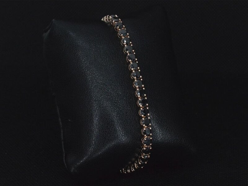 Product: Rosegouden armband met 16.00 carat zwarte (enhanced) Briljant geslepen diamanten Specificaties: Diamant: Natuurlijk Aantal: 47 stuks Slijpvorm: Briljant geslepen Gewicht (carat): 16.00 carat Kleur: Zwart (enhanced) Slijpkwaliteit: Zeer mooi Juweel: Armband Gewicht: 14 gram Afmetingen/lengte: 18 cm Materiaal: 14k goud (585) Conditie: Nieuw Verpakking: Luxe sieradendoos Toelichting: De kwaliteit is overgenomen van het rapport behorend bij item. De waardebepaling is een beoordeling van een gecertificeerde diamantair, gebaseerd op consumentenprijzen. Consumentenprijs: € 9.345,-