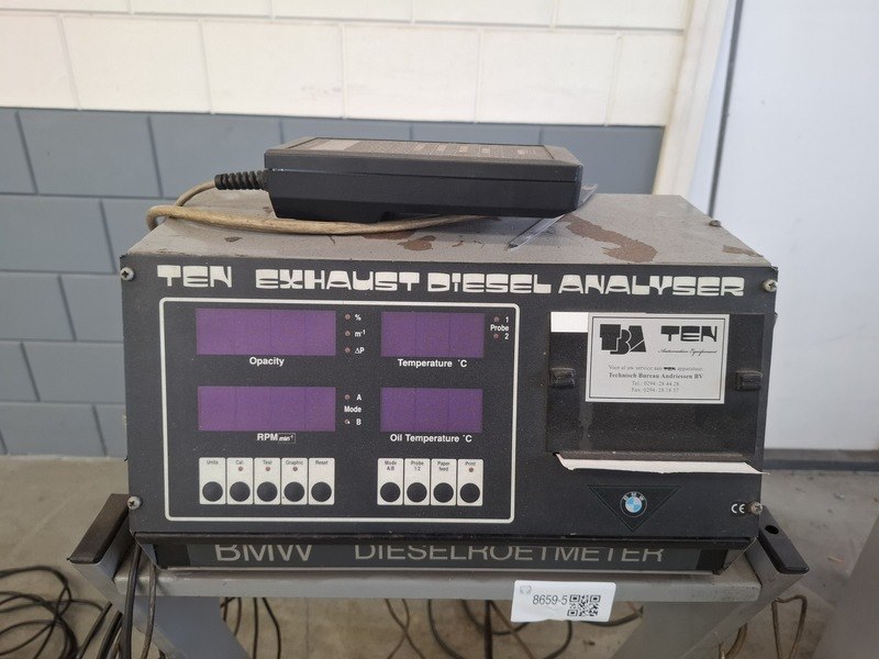 Merk: TEN BMW Product: Dieselroetmeter Conditie: gebruikt Specificaties: 230V, met dampafzuiging TEN, NER-001, bouwjaar: 2020, slang met Y-stuk