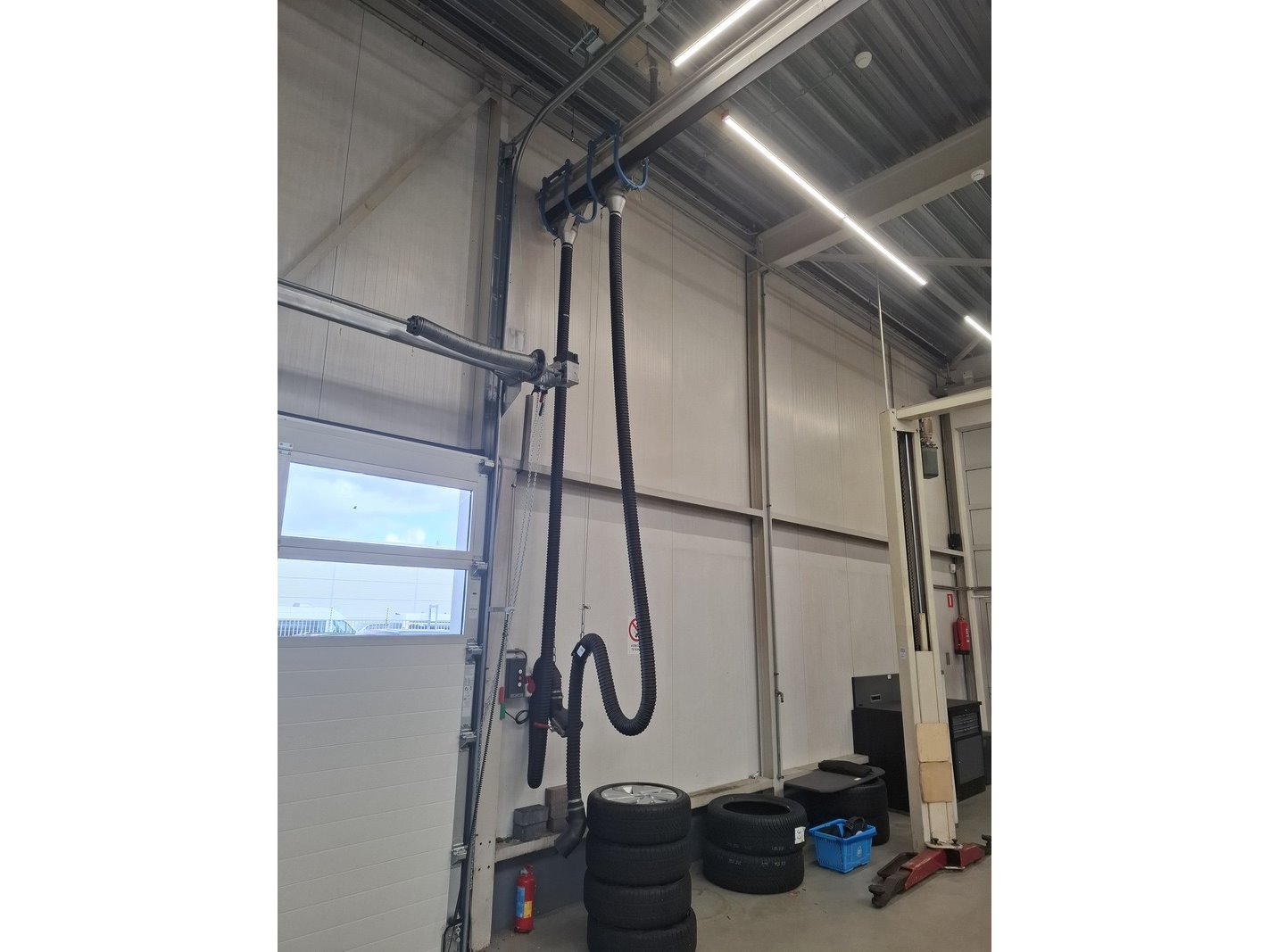 Product: Centrale uitlaatgas-afzuiginstallatie Conditie: gebruikt Specificaties: bestaande uit: 2x slang, rail en afzuigmotor