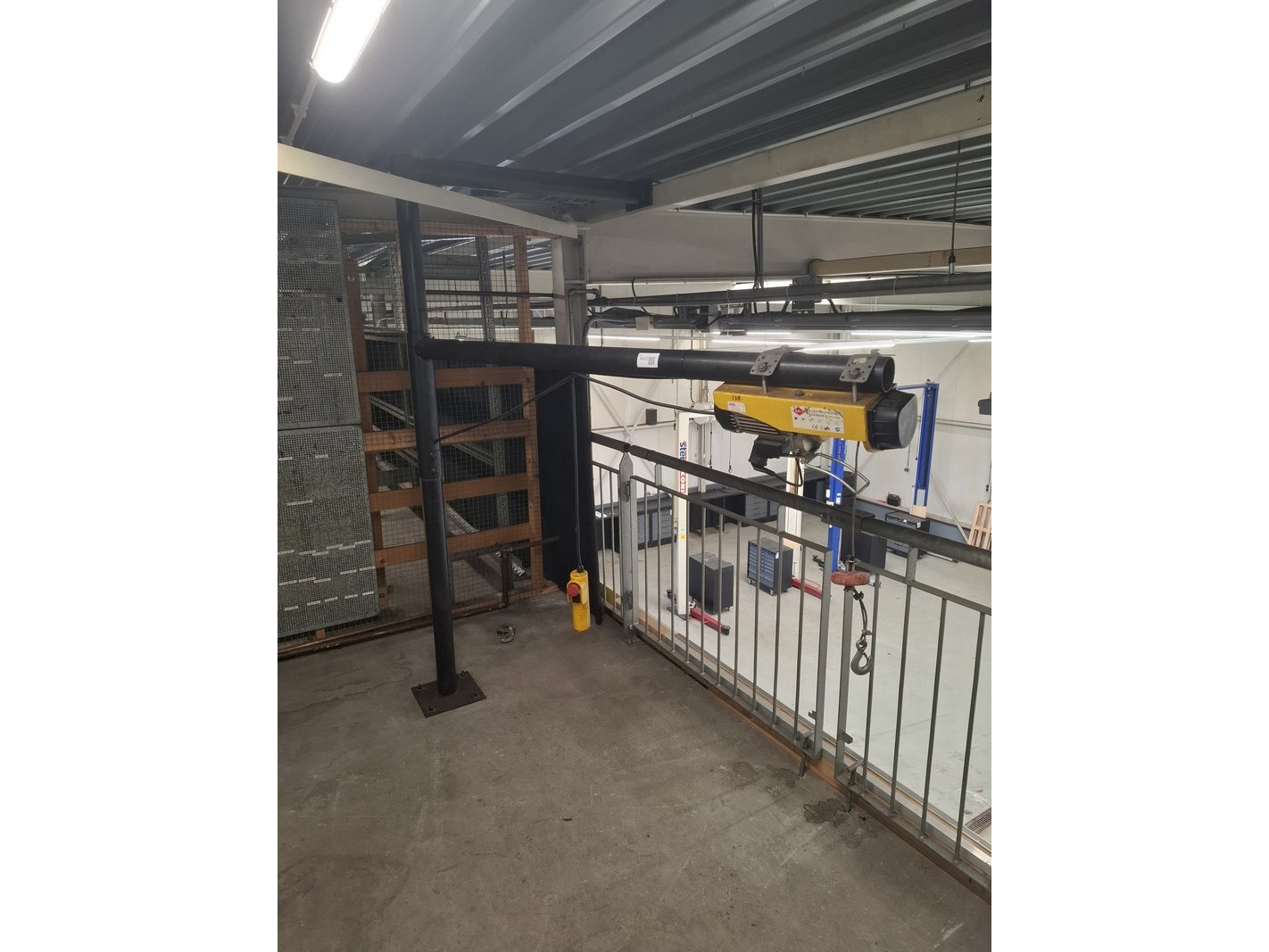 Product: Zwaaiarm met takel Afmeting: hxb ca 210x180cm Conditie: gebruikt Specificaties: takel: AA lift, 400/800kg, 230V