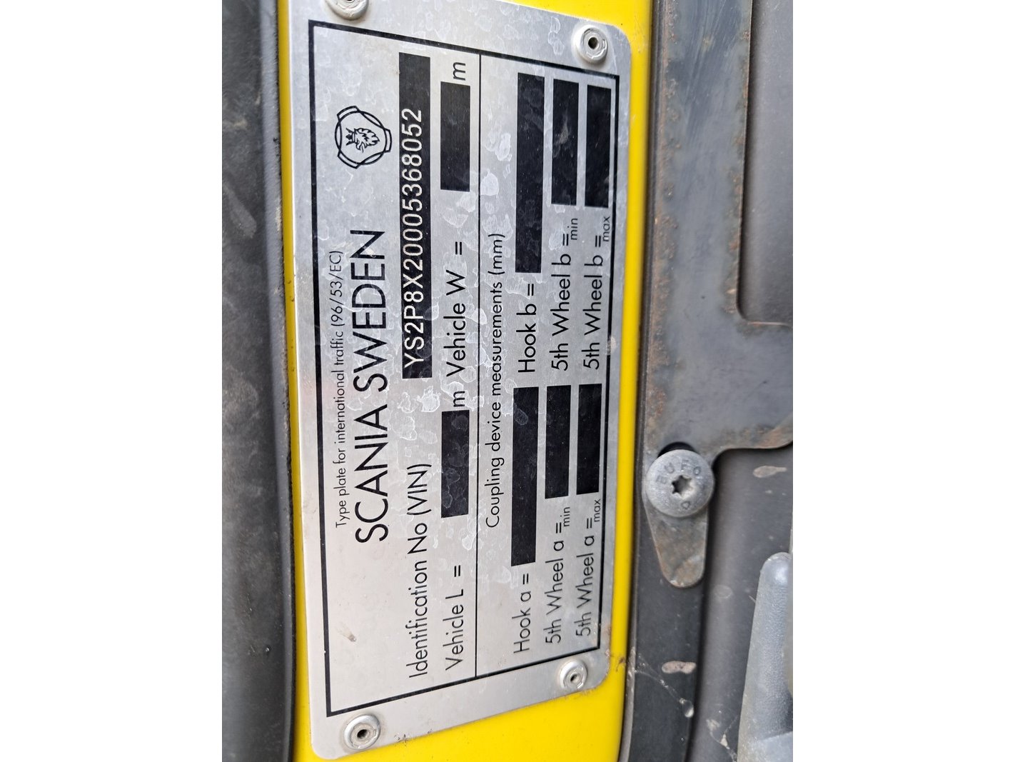 Merk: SCANIA Product: Vrachtwagen met haakarmsysteem BouwJaar: 2015 Specificaties: Basis kenmerken Kenteken: 18-BFS-6 Chassisnummer (VIN) : YS2P8X20005368052 Datum eerste toelating: 10 maart 2015 Vervaldatum APK: 21 november 2026 Afgelezen tellerstand: 335.316 km Motor, Prestaties & Milieu Brandstof: diesel Motorcode: DC13 147 Aantal cilinders: 6 Cilinderinhoud: 12.742 cm³ Max. vermogen: 331 kW / 450 pk Transmissie: automatisch Emissiecode: Euro 6 Maten & Gewichten Voertuig lengte: 9.350 mm Voertuig breedte: 2.550 mm Wielbasis: 6.450 mm Massa rijklaar: 16.500 kg Max. massa voertuig: 36.000 kg Laadvermogen: 19.600 kg