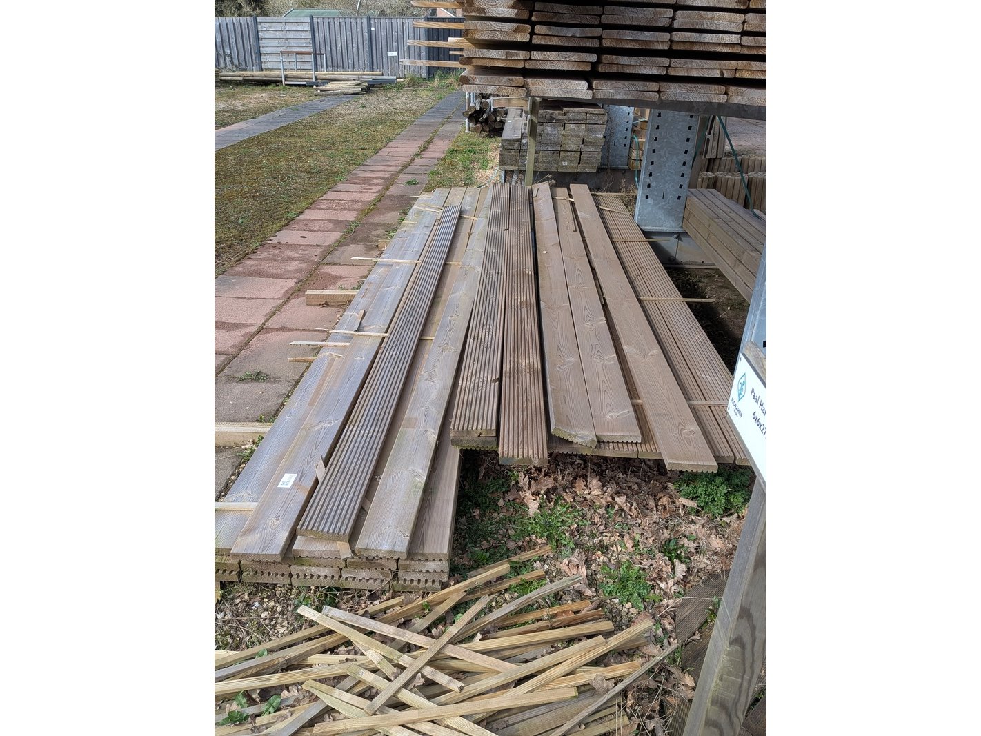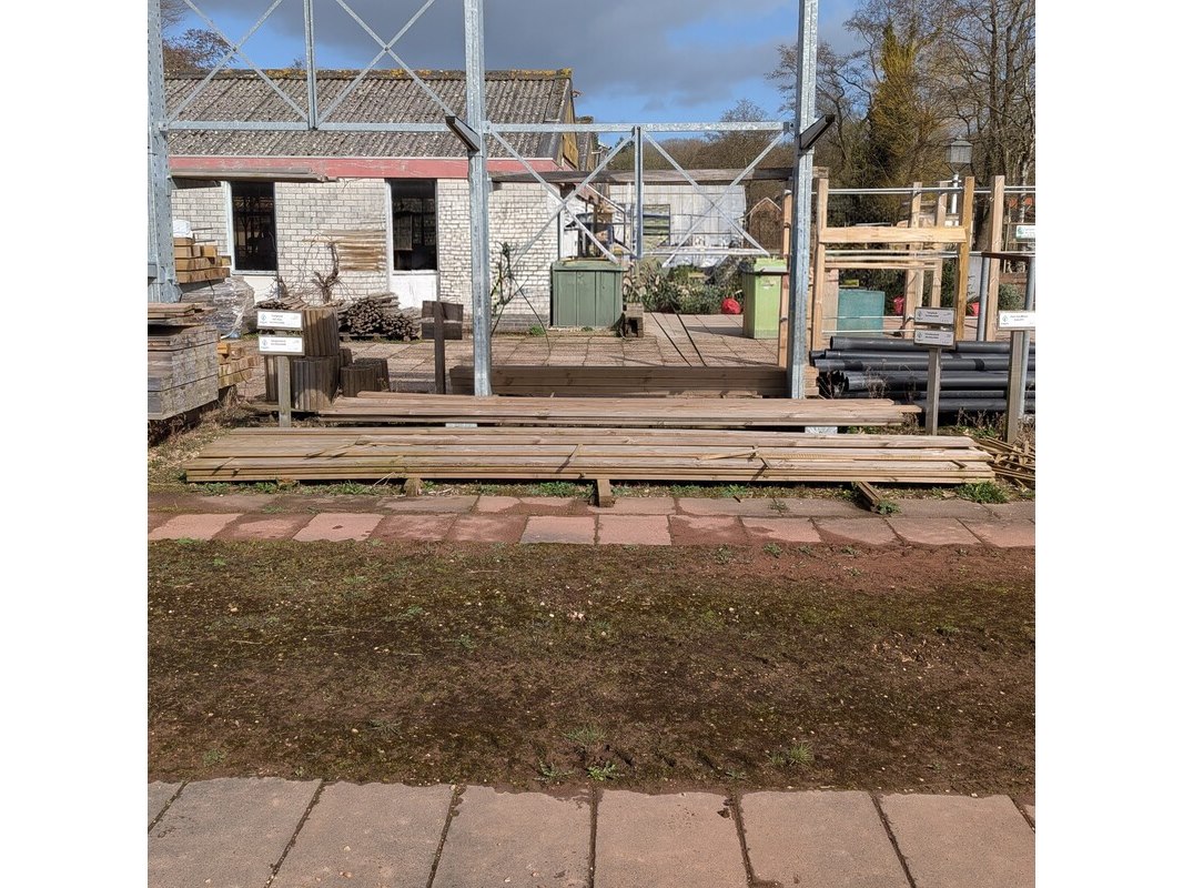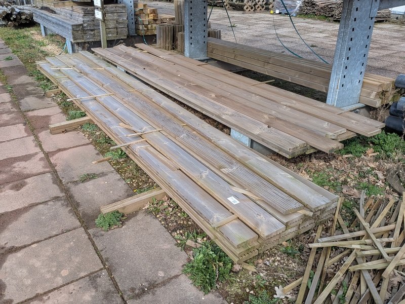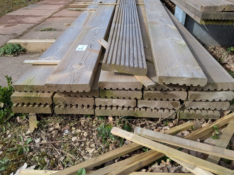 Product: Partij vlonderplanken Specificaties: Diverse afmetingen, ca. 28x145x4000 mm en 28x145x5000