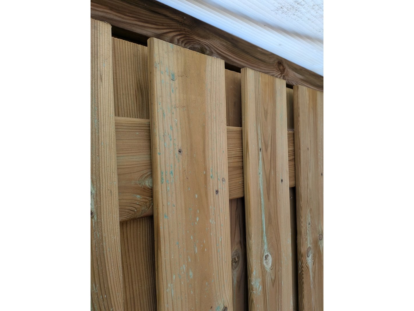Product: Schuttingdeel Afmeting: Ca. 180x180 cm Specificaties: Inclusief 13x afdeklat, lengte ca. 180 cm