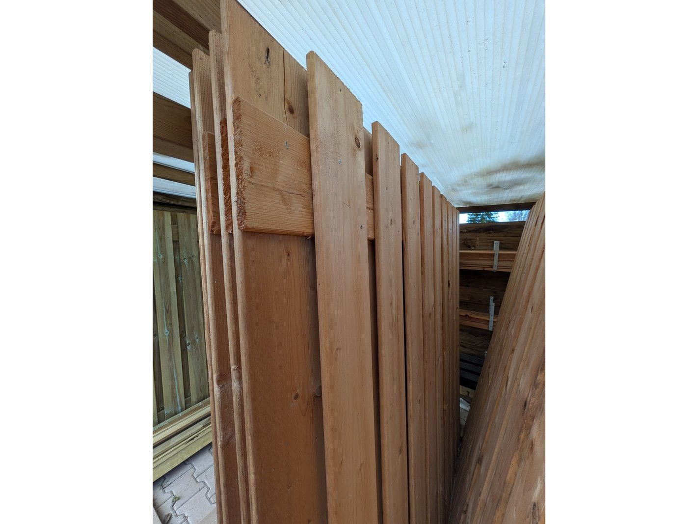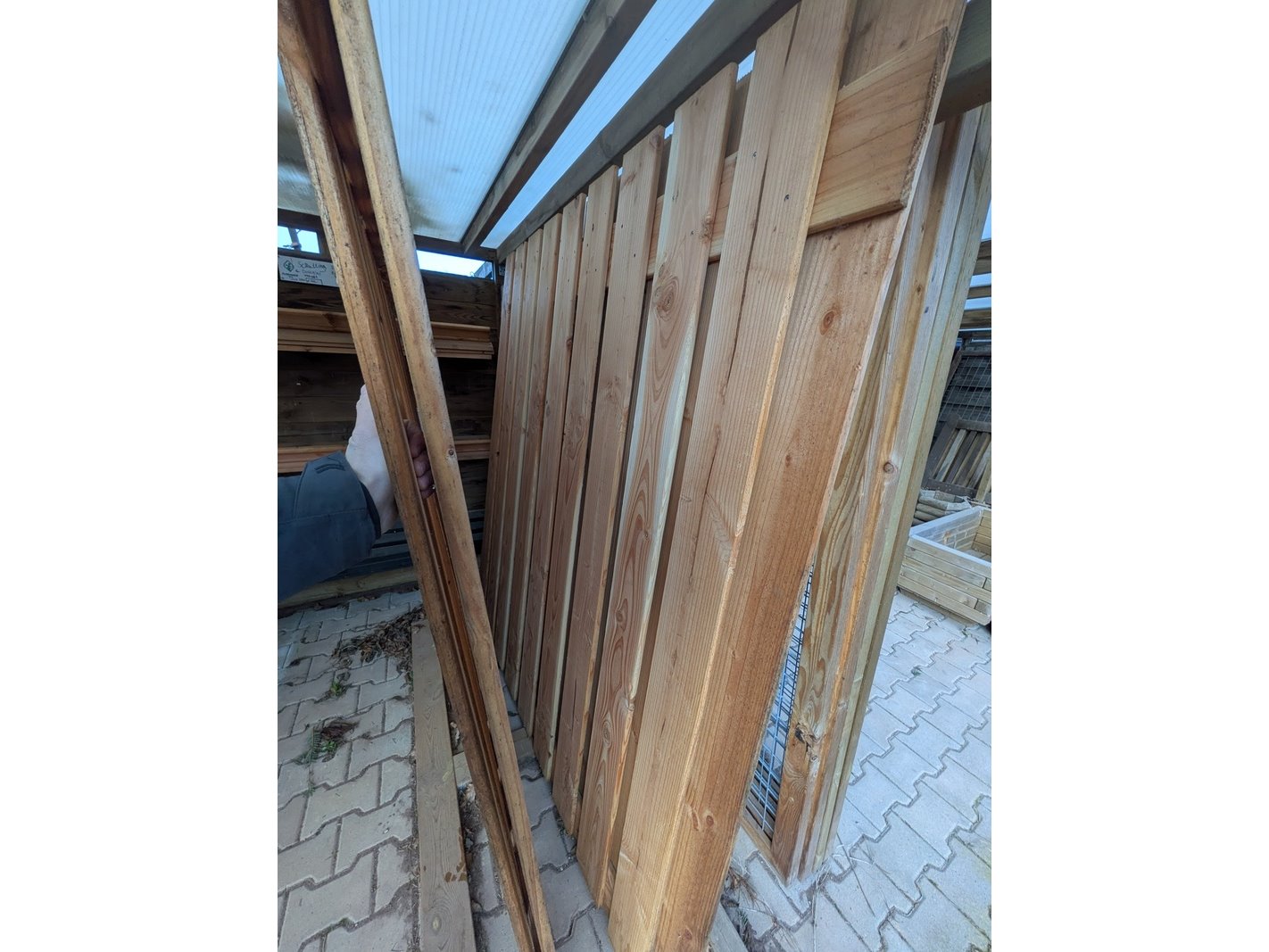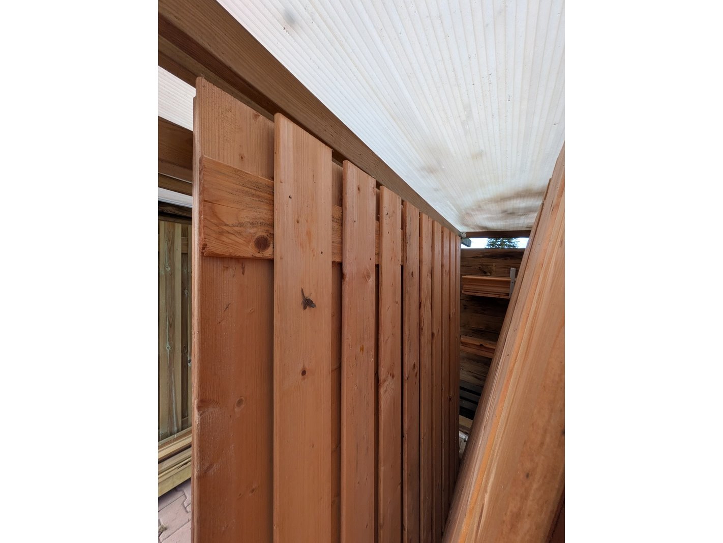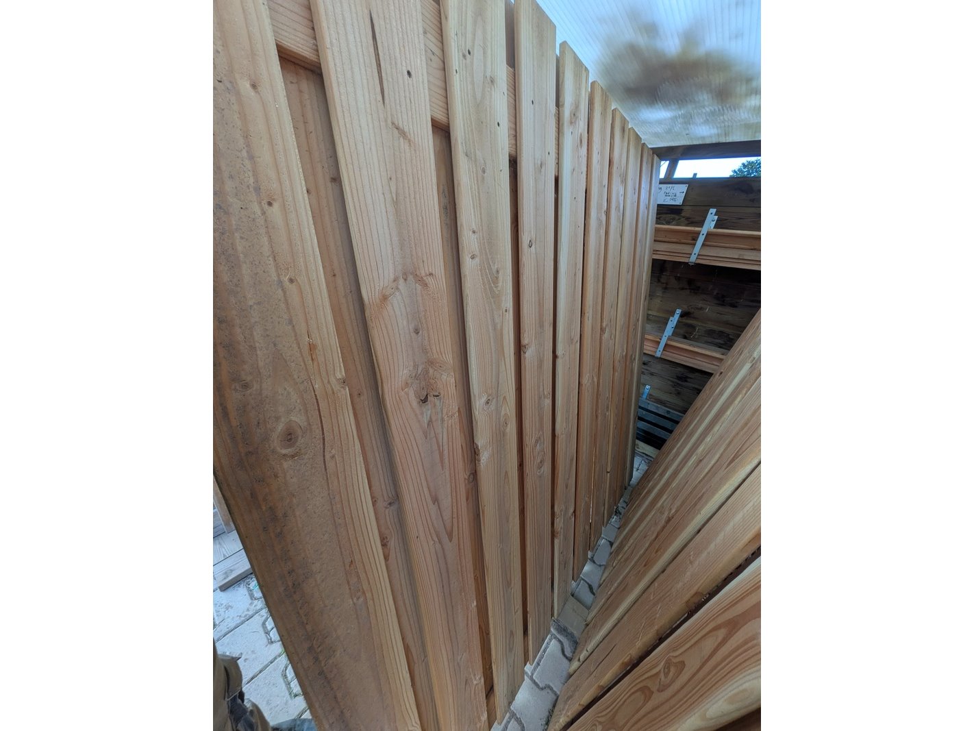 Product: Schuttingdeel Afmeting: Ca. 180x180 cm Specificaties: 5x Douglas en 2x Red Class. 14x Afdeklat, Douglas, 7x afdeklat, Red Class en 12x afdeklat, zwart.
