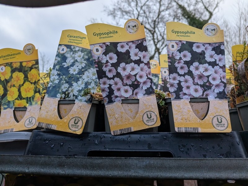 2x deense kar met diverse planten in pot