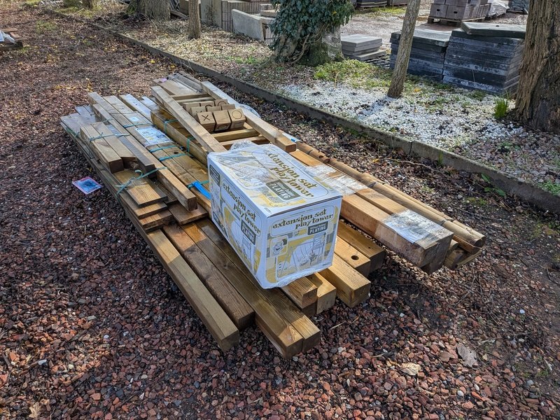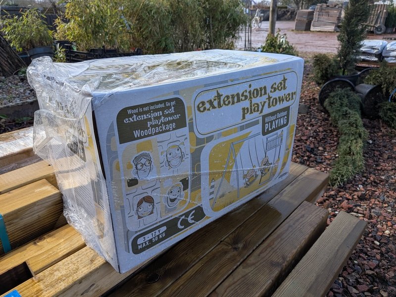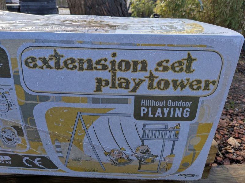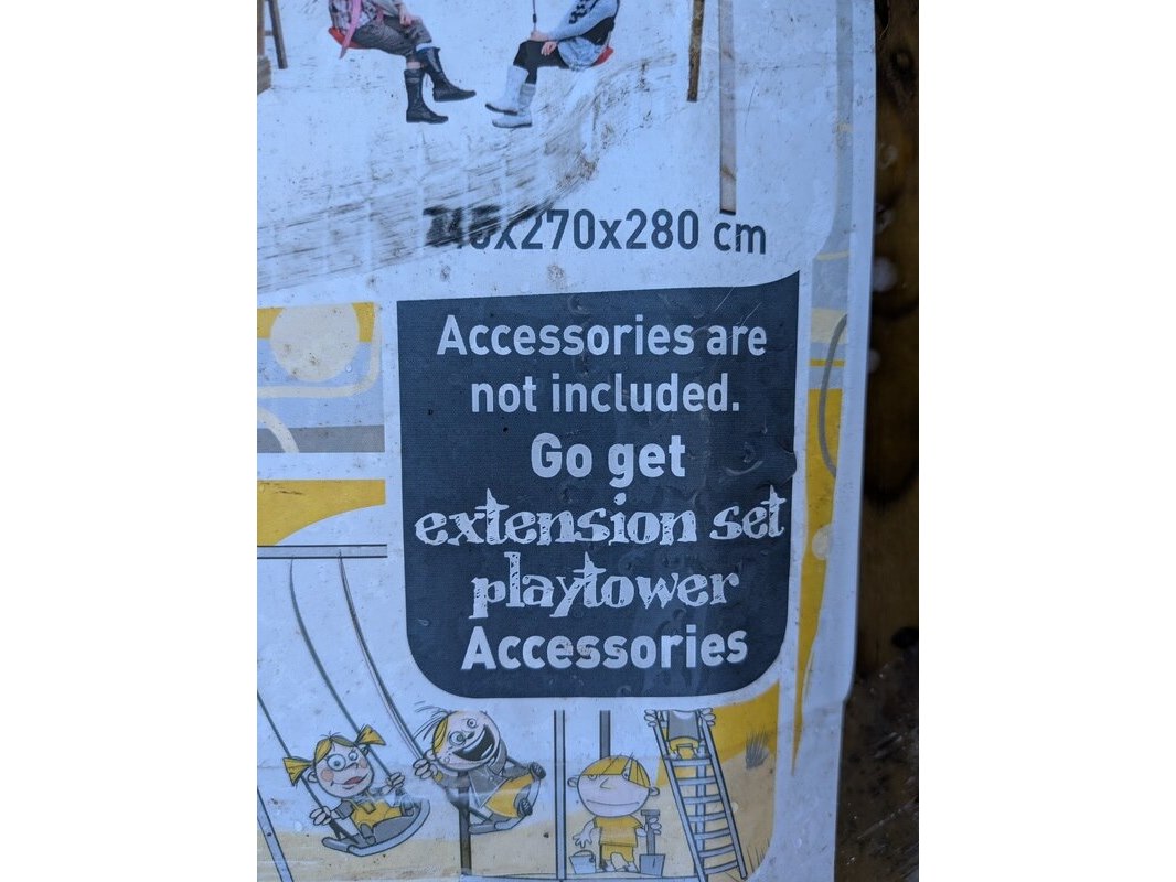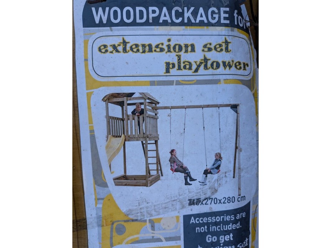 Product: Speeltoestel Materiaal: Metaal Specificaties: 1x schommel, lengte pakket ca. 400 cm en 1x speelhuisje, lengte pakket ca. 300 cm