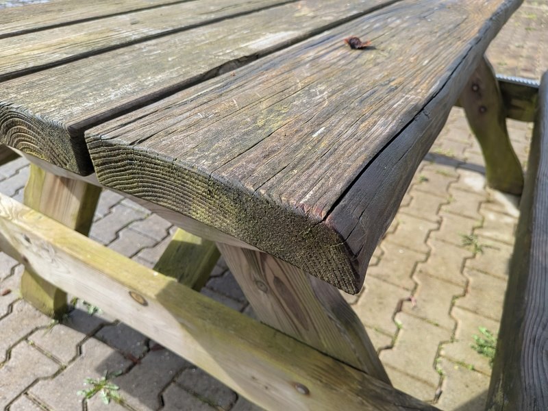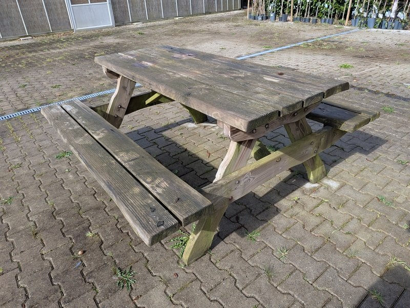 Picknicktafel met tuinhuisje