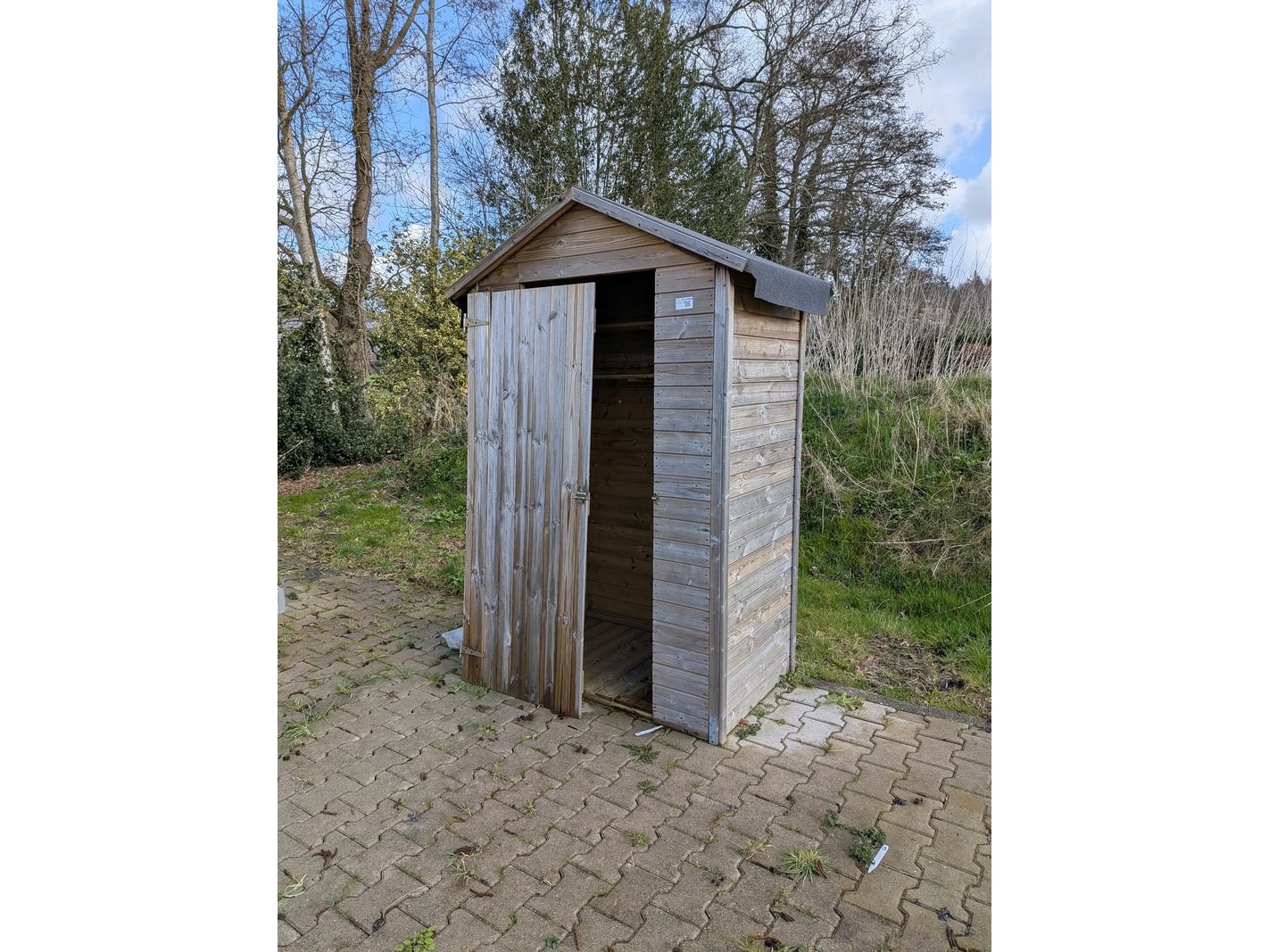 Product: Picknicktafel met tuinhuisje Specificaties: Tuinhuisje hxbxd ca. 213x147x94 cm, deur dient opnieuw bevestigd te worden, picknicktafel lxbxh ca. 180x175x80 cm