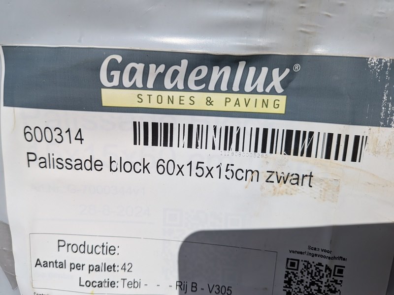 Merk: Gardenlux Product: Partij pallisade blokken Specificaties: 81x ca. 60x15x15 cm, 105x ca. 45x15x15 cm, 100x ca. 30x15x15 cm