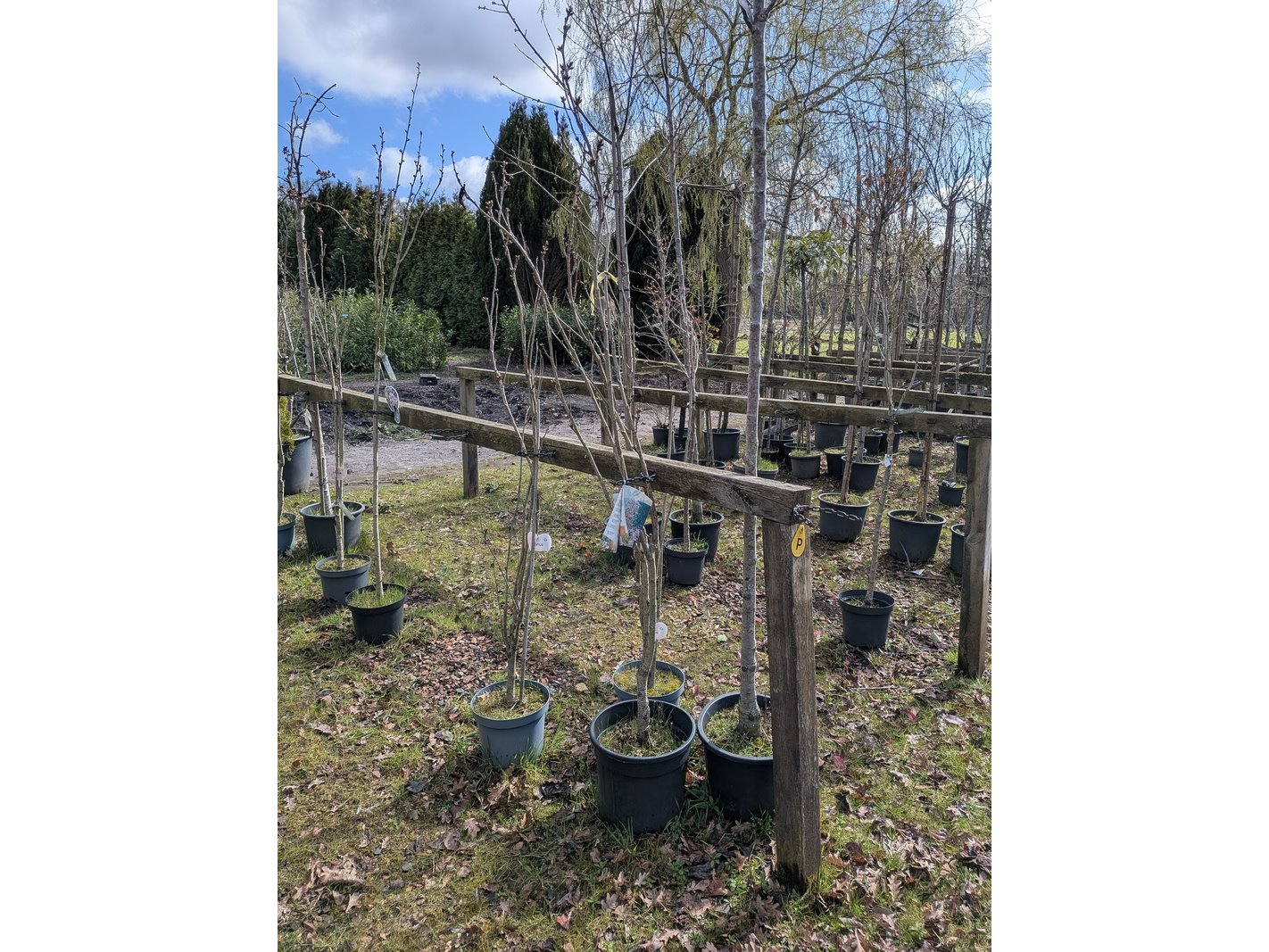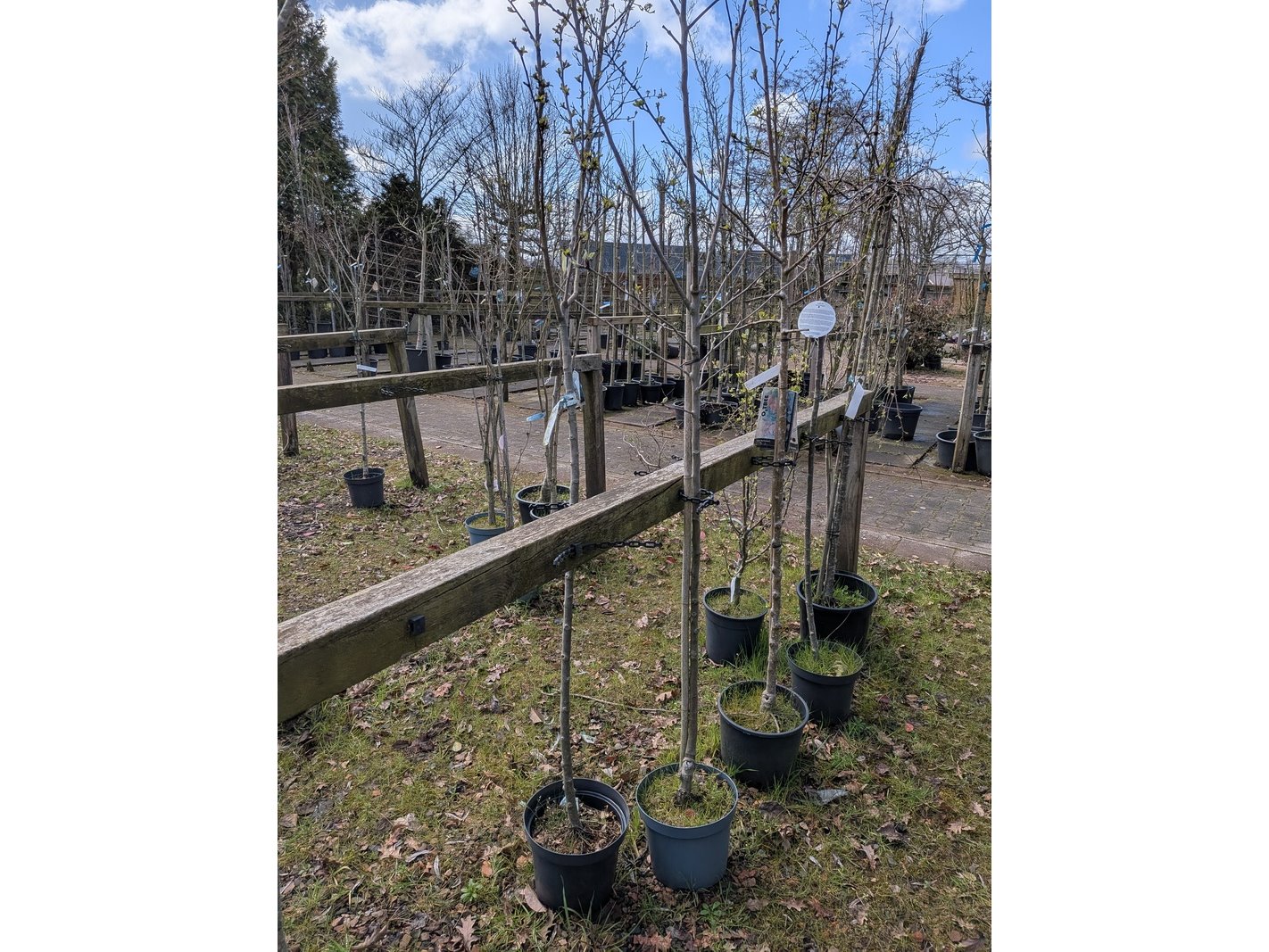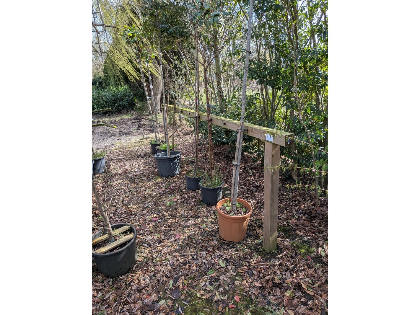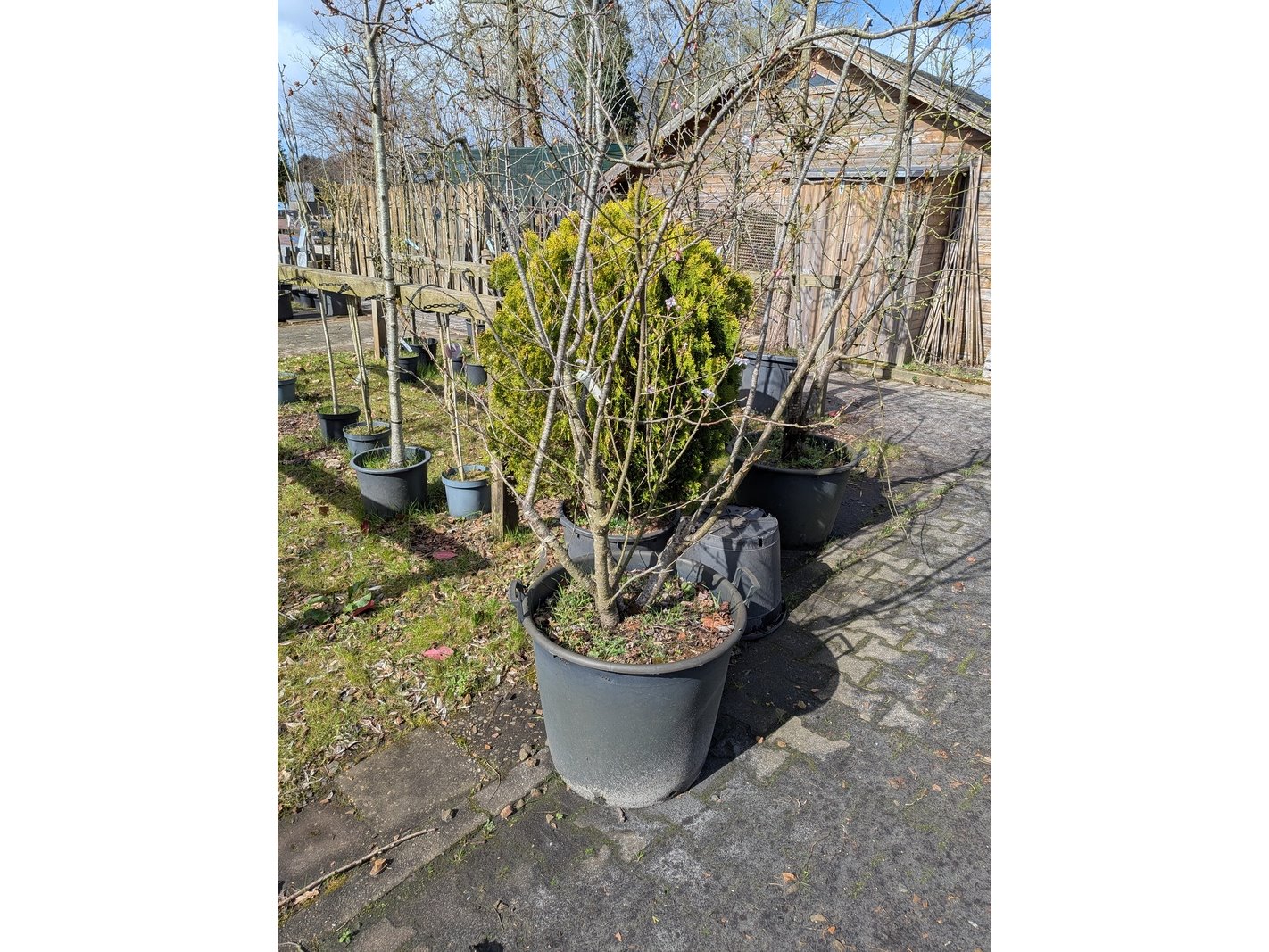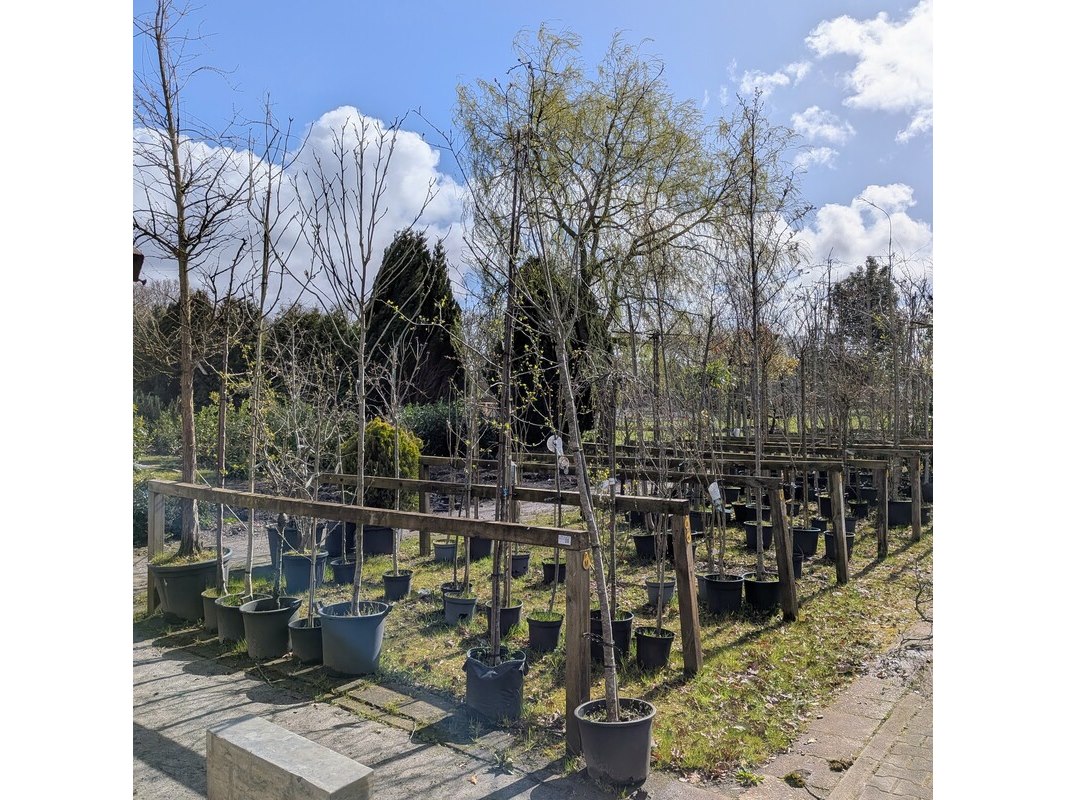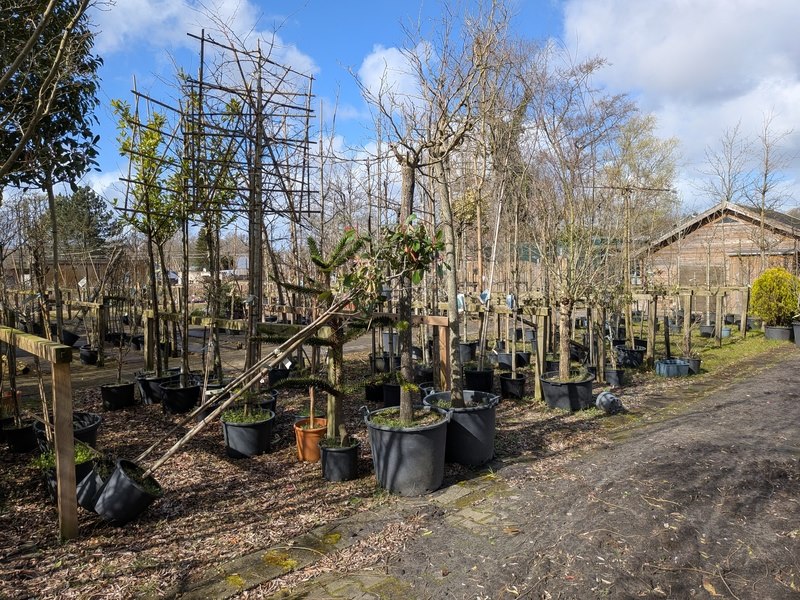 Product: Partij tuinbomen in pot Afmeting: Maximale hoogte ca. 450 cm Specificaties: Diverse soorten, o.a. Bolboom, Sierappelboom, Japanse zuilsierkers, rode Japanse sierkers, sierpeer, etc.