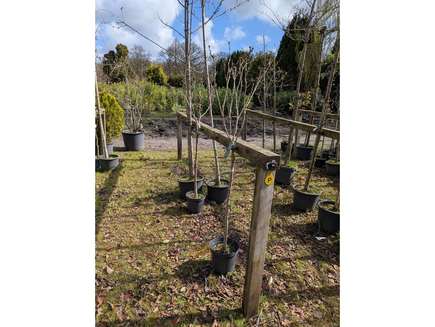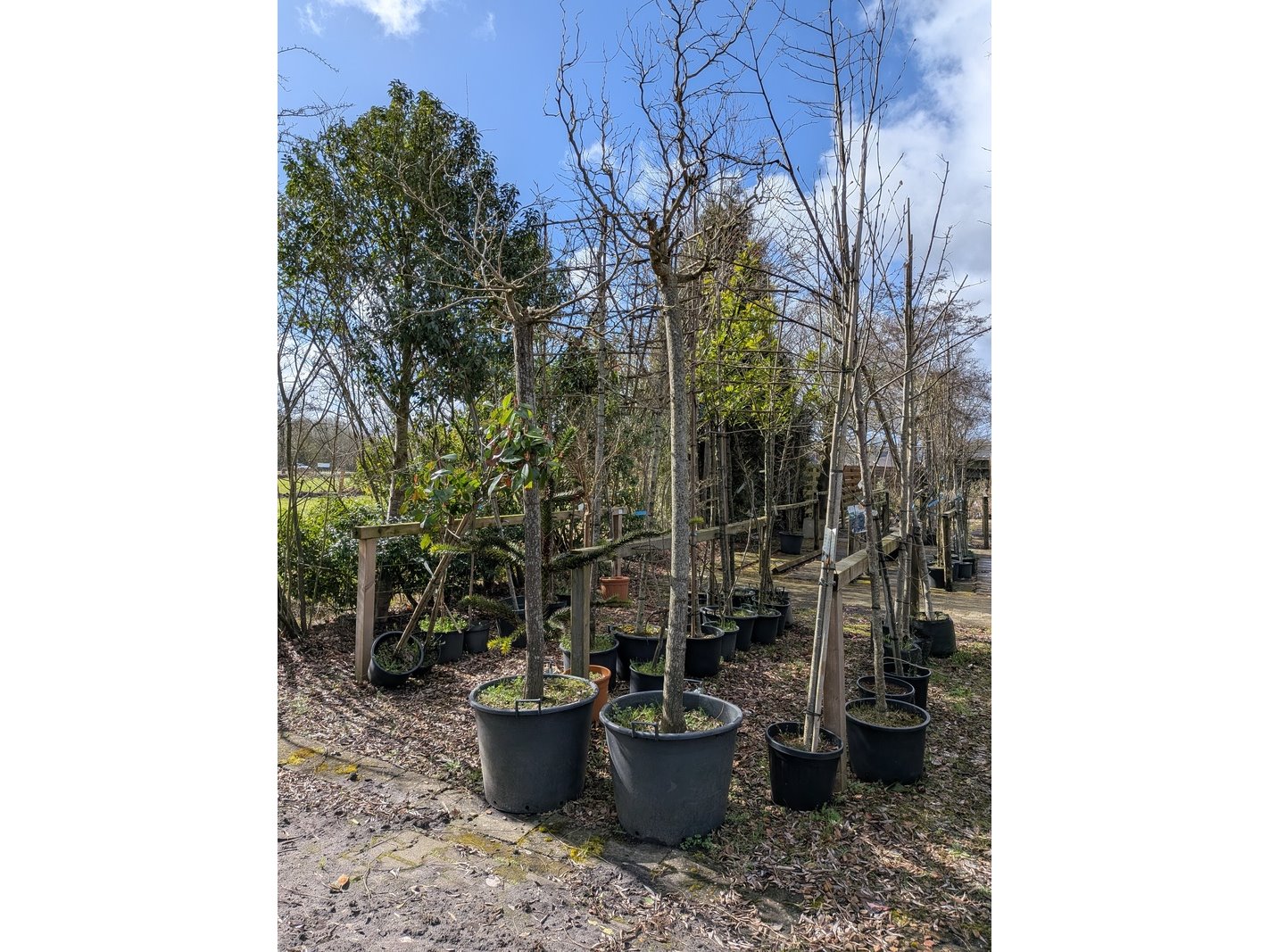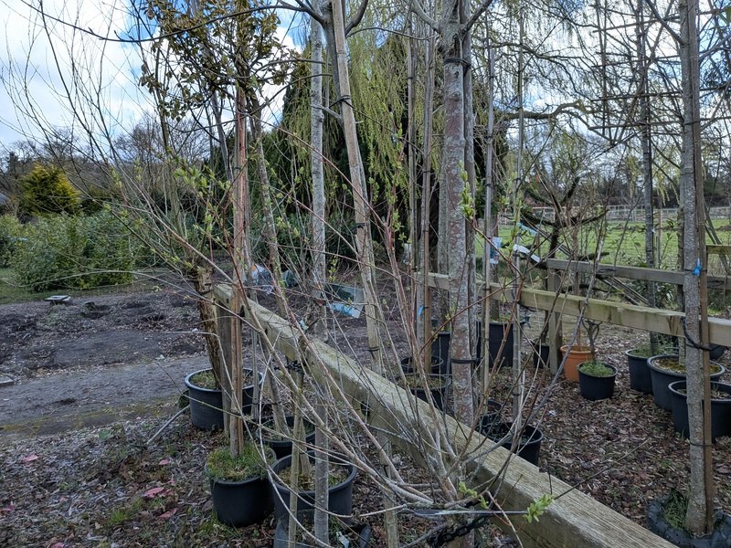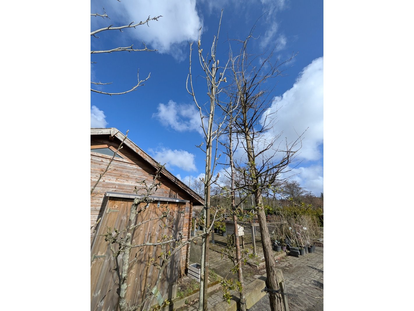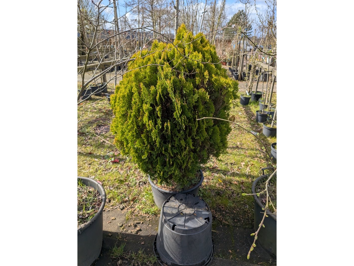 Product: Partij tuinbomen in pot Afmeting: Maximale hoogte ca. 450 cm Specificaties: Diverse soorten, o.a. Bolboom, Sierappelboom, Japanse zuilsierkers, rode Japanse sierkers, sierpeer, etc.