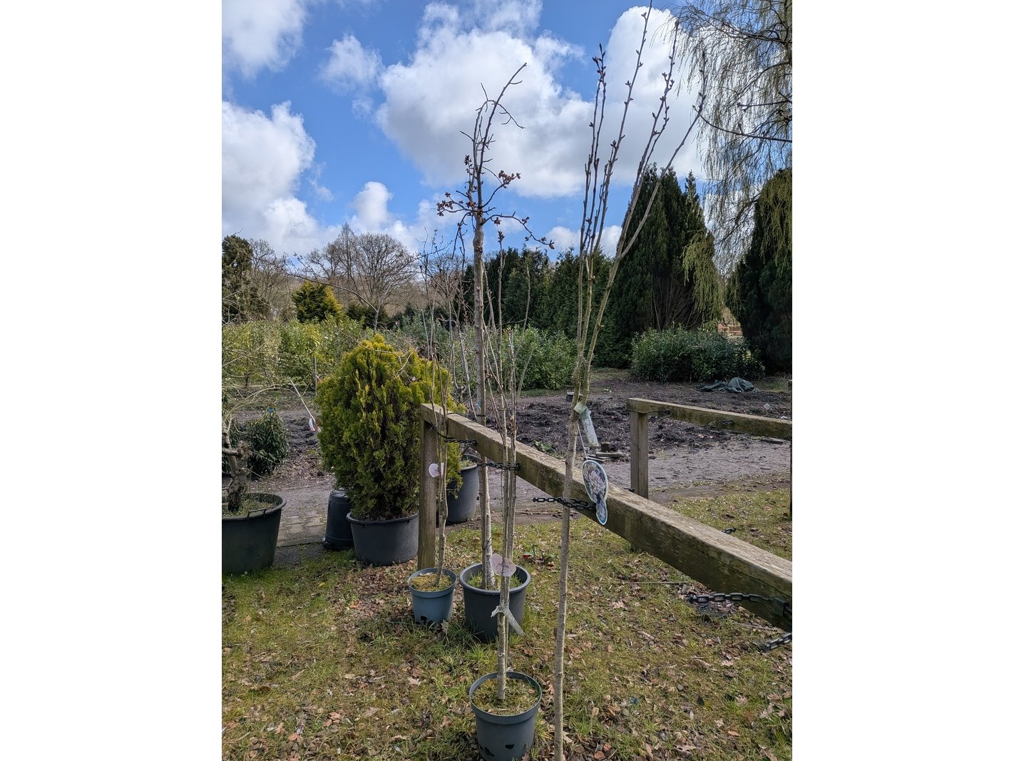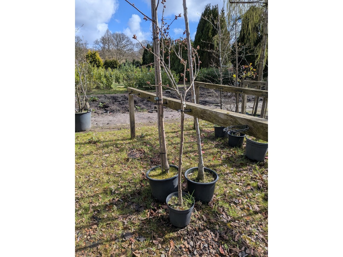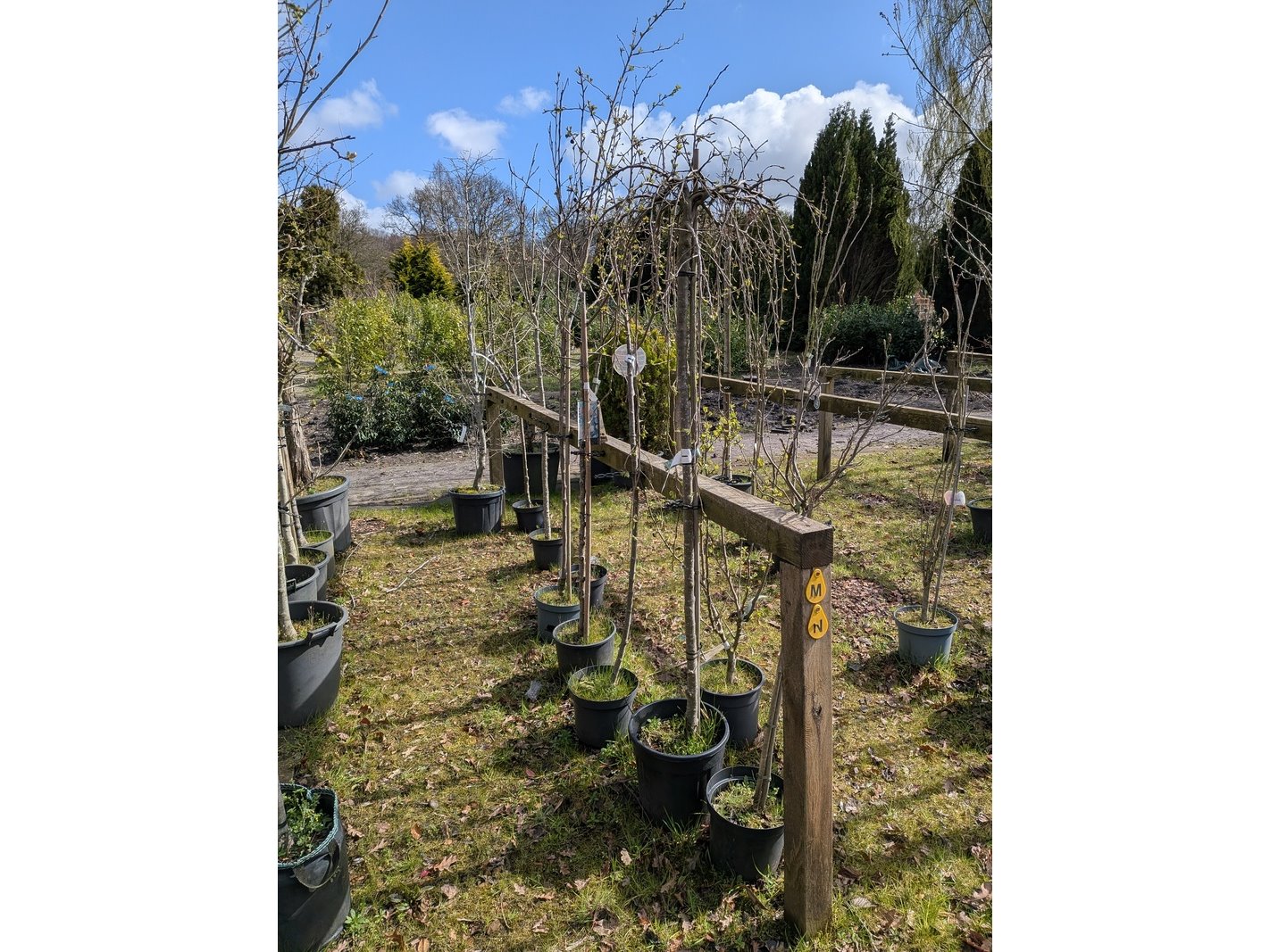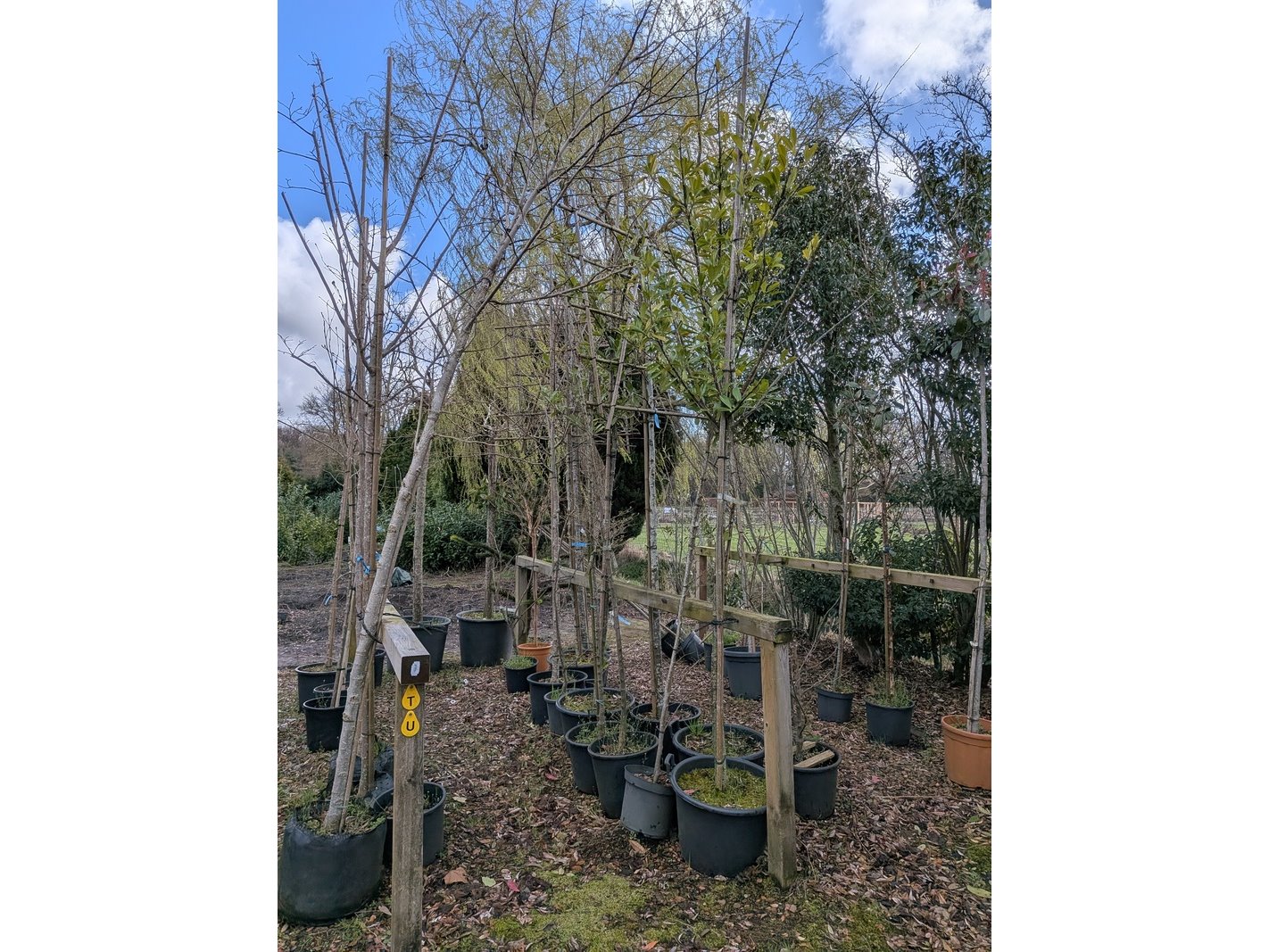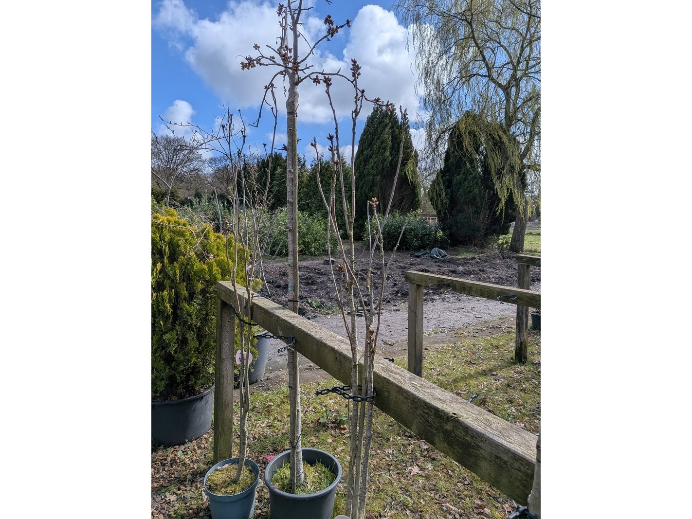 Product: Partij tuinbomen in pot Afmeting: Maximale hoogte ca. 450 cm Specificaties: Diverse soorten, o.a. Bolboom, Sierappelboom, Japanse zuilsierkers, rode Japanse sierkers, sierpeer, etc.