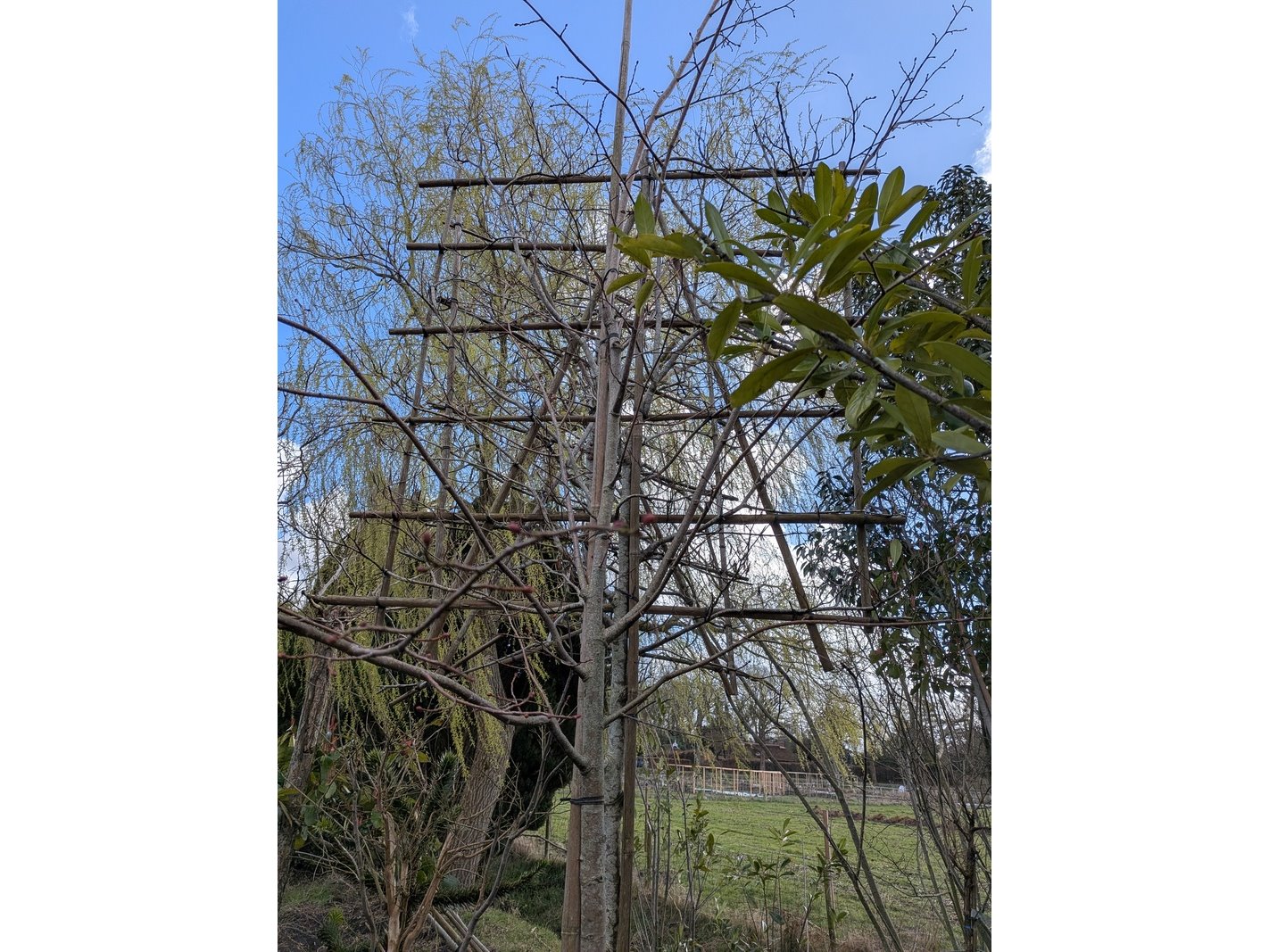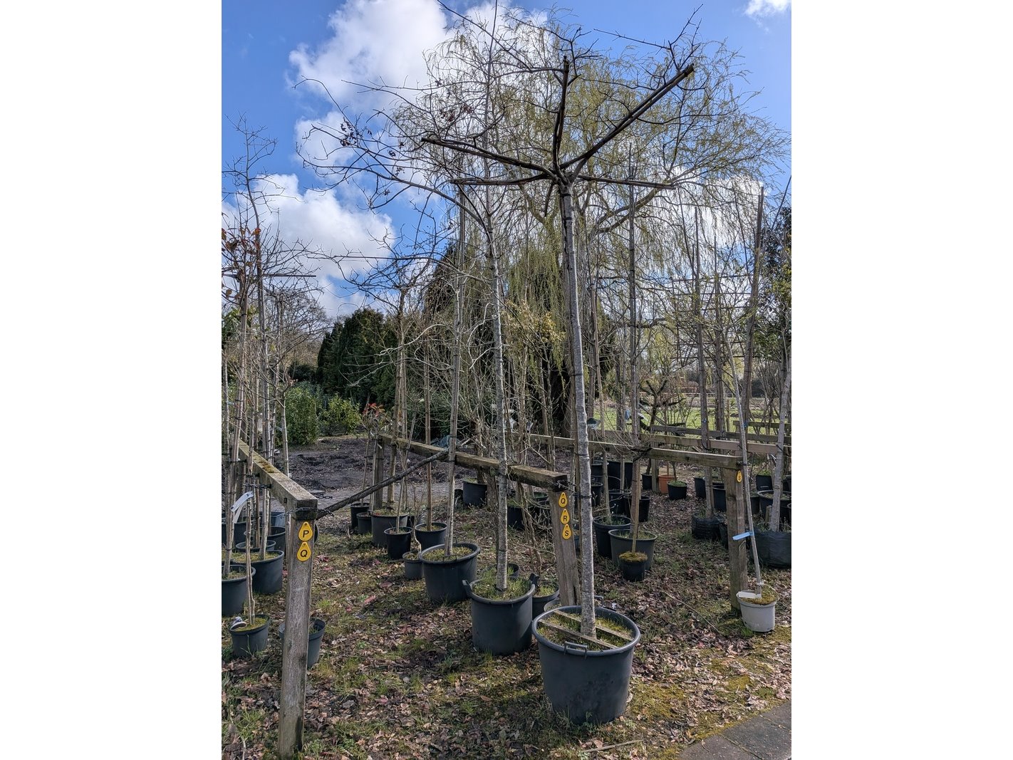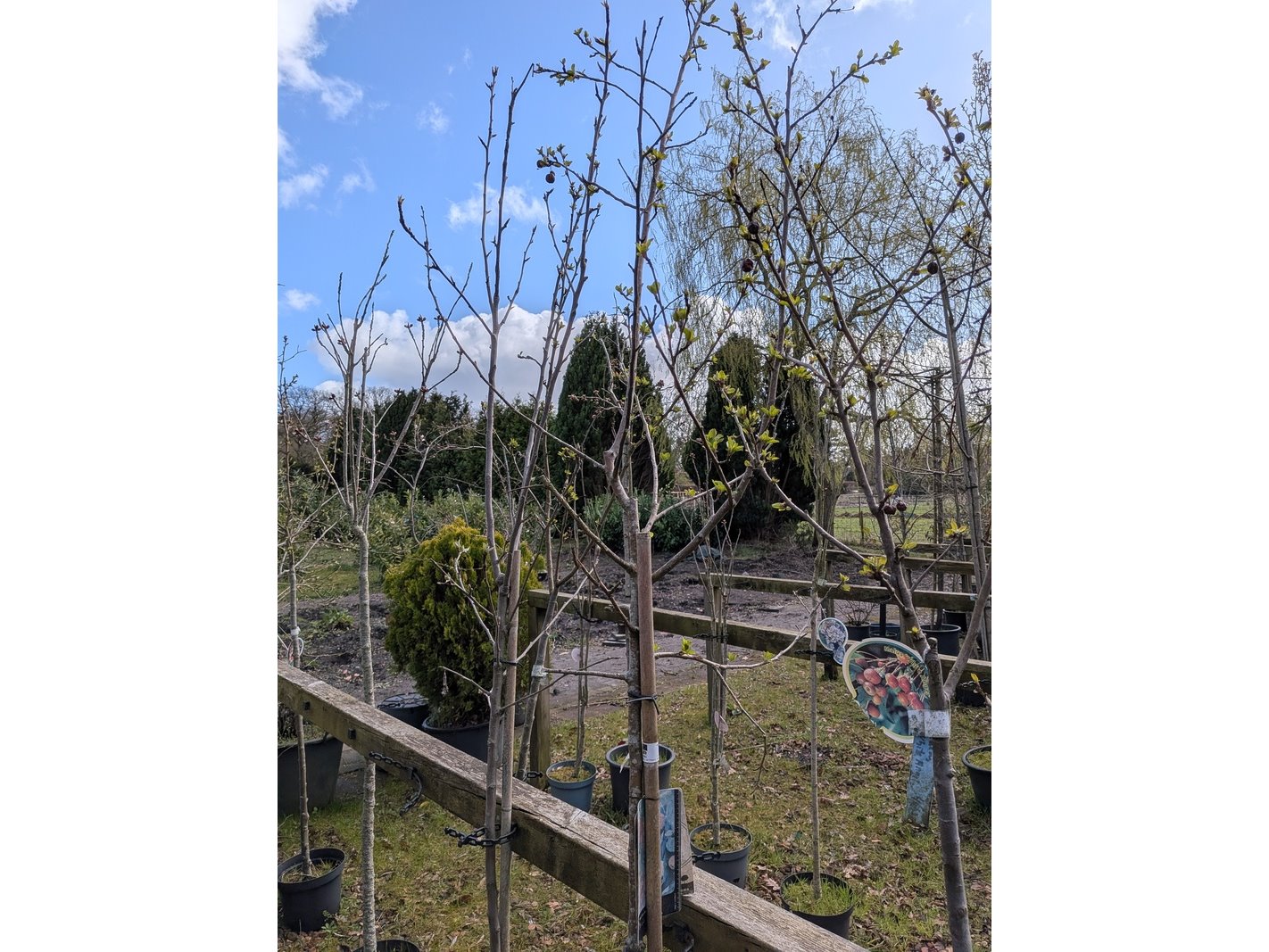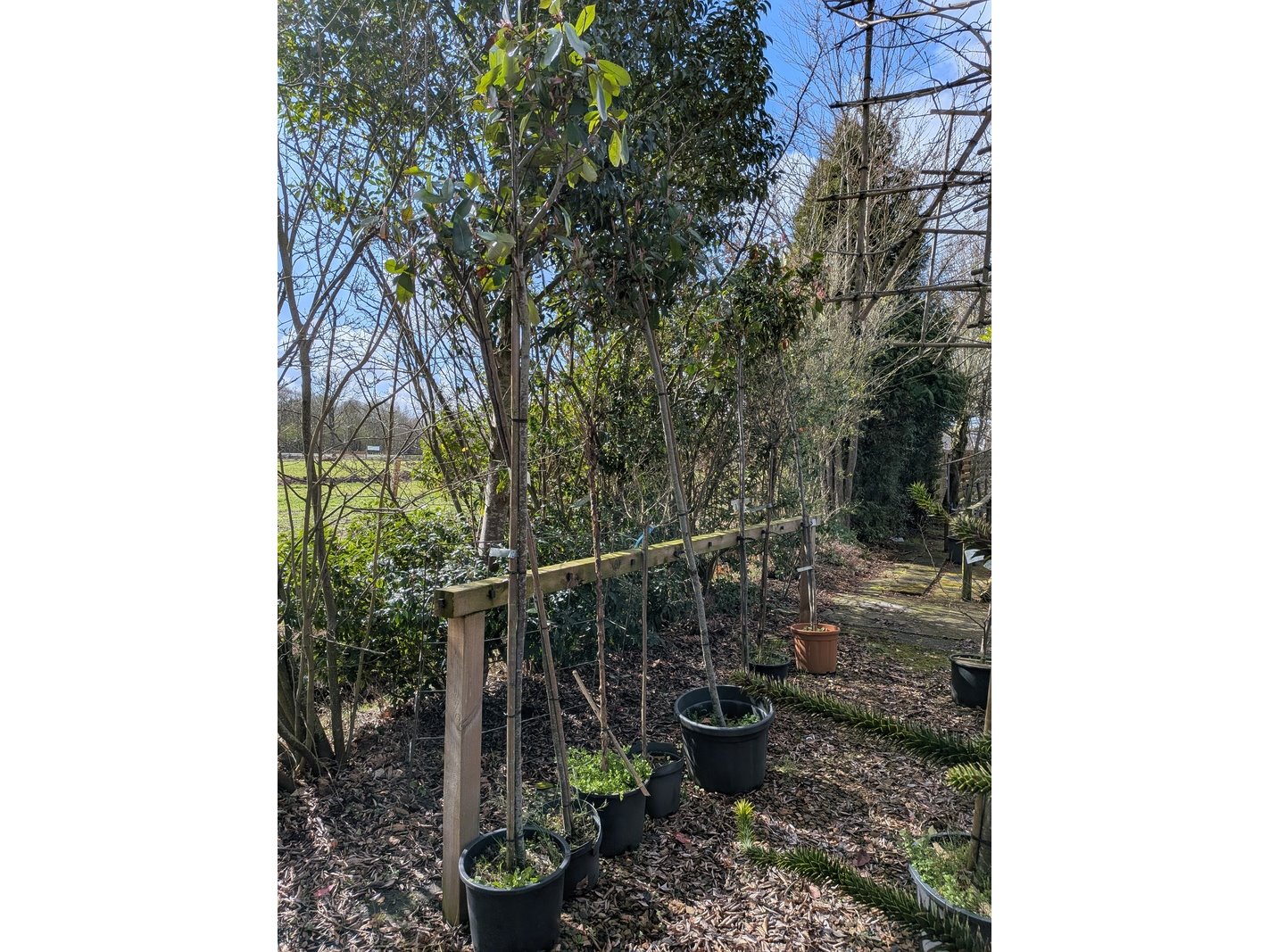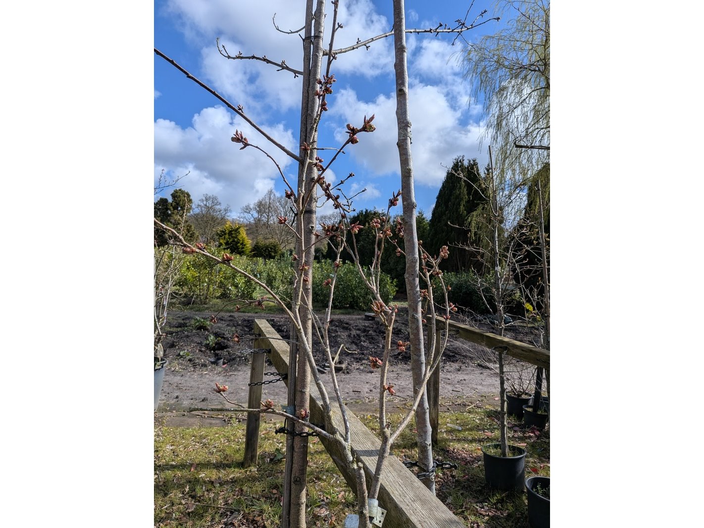 Product: Partij tuinbomen in pot Afmeting: Maximale hoogte ca. 450 cm Specificaties: Diverse soorten, o.a. Bolboom, Sierappelboom, Japanse zuilsierkers, rode Japanse sierkers, sierpeer, etc.