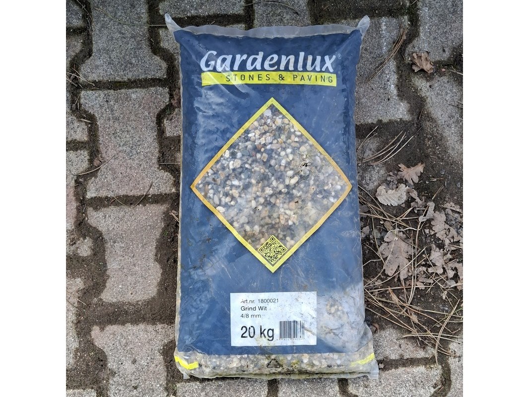 Merk: Gardenlux Product: Zak grind a 20 kg Kleur: Wit Afmeting: 4-8 mm