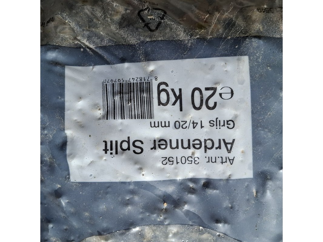 Merk: Gardenlux Product: Zak Ardenner split a 20 kg Kleur: Grijs Afmeting: 14-20 mm