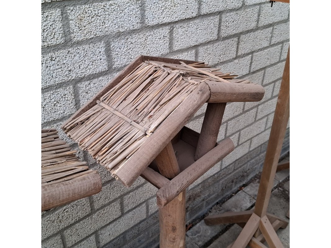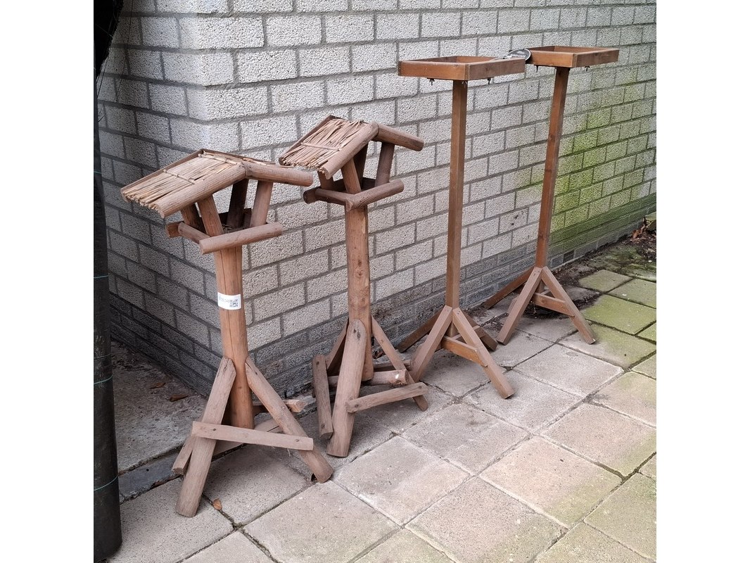 Product: Vogelhuis en 2x voederplank op standaard Specificaties: 2x hoogte ca. 110 en 2x hoogte ca. 98 cm