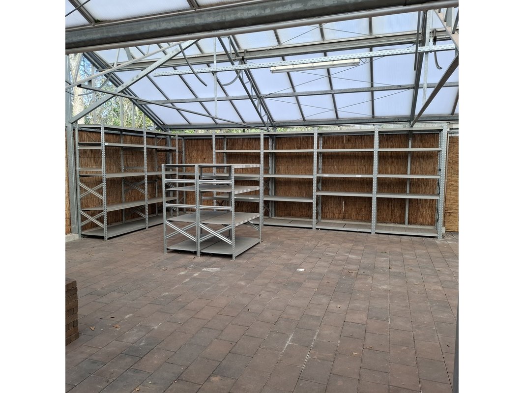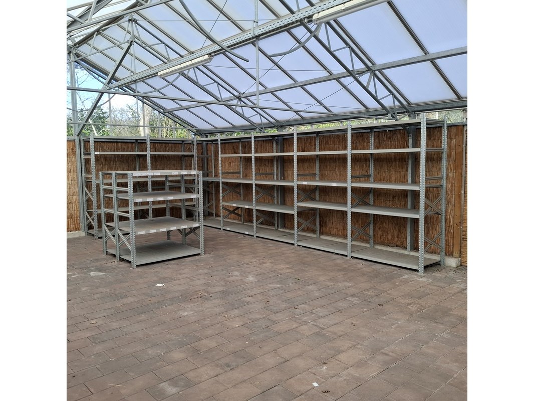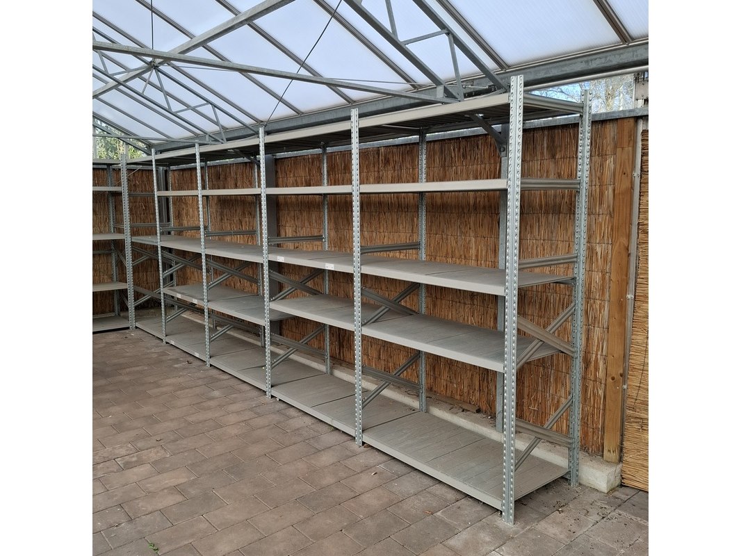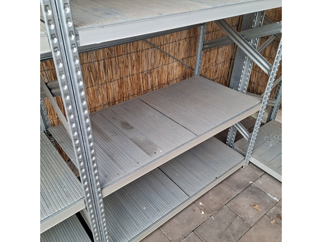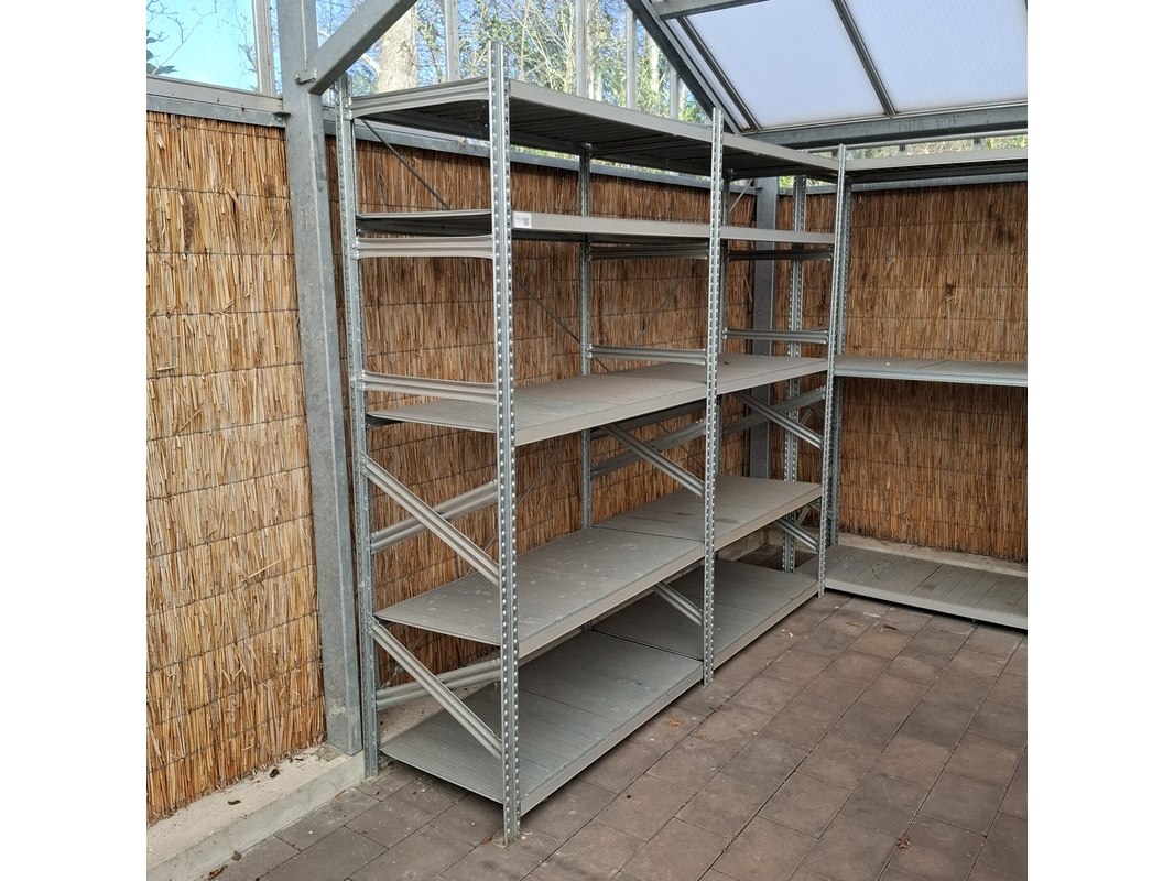 Product: Legbordstelling Materiaal: Metaal Specificaties: hxbxd ca. 1x 220x248x60 cm, 1x 220x610x60 cm, 2x 145x128x60 cm
