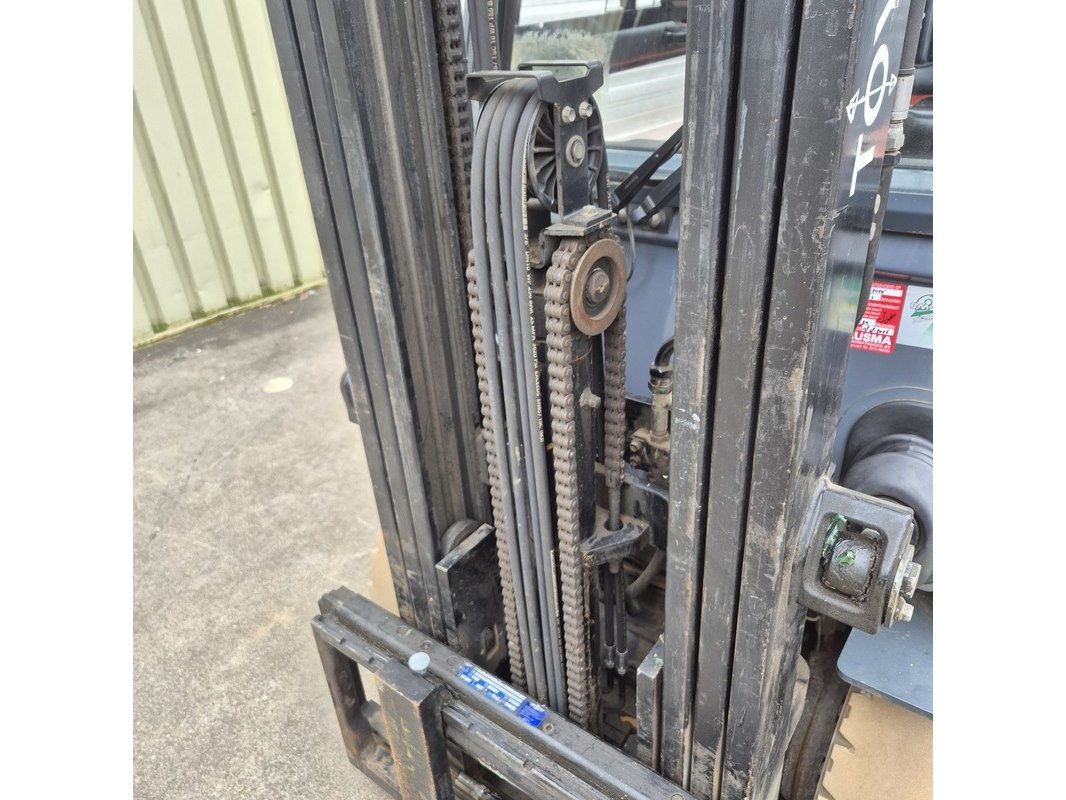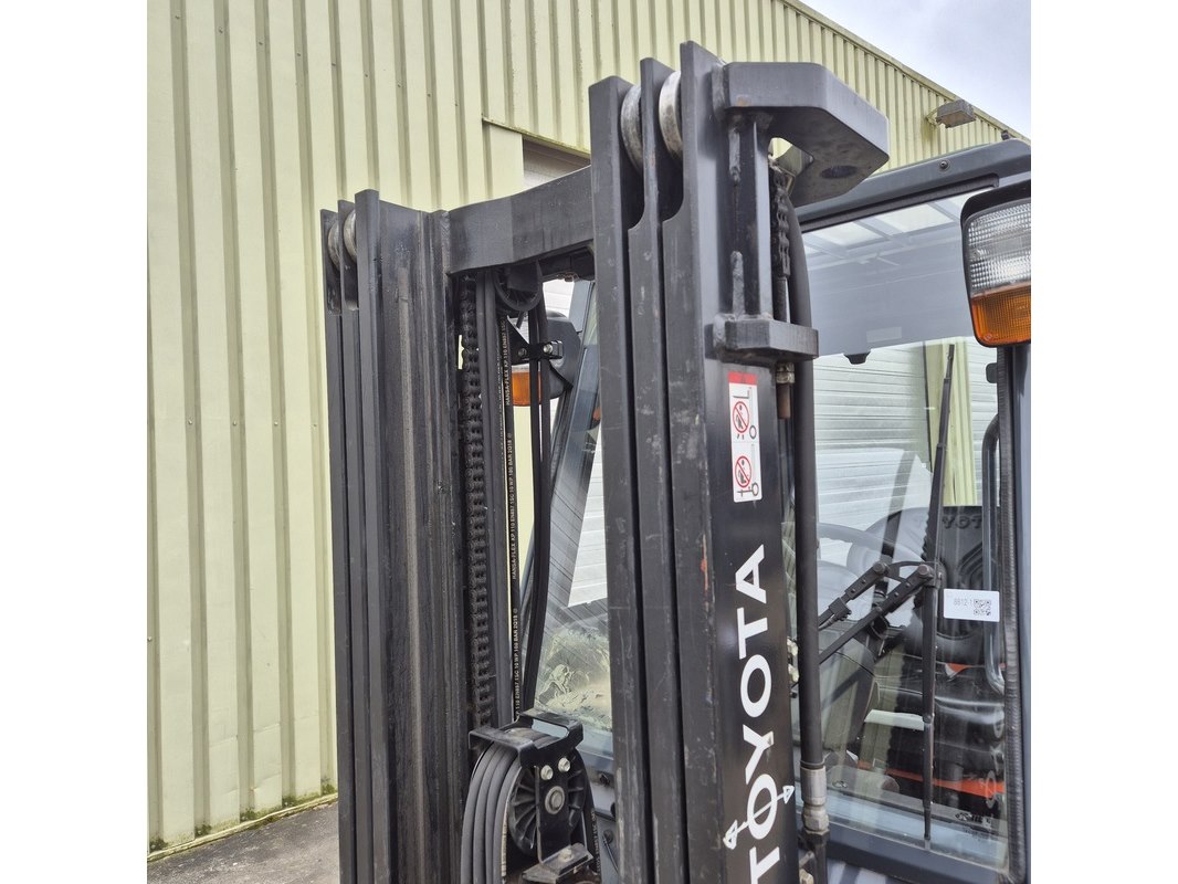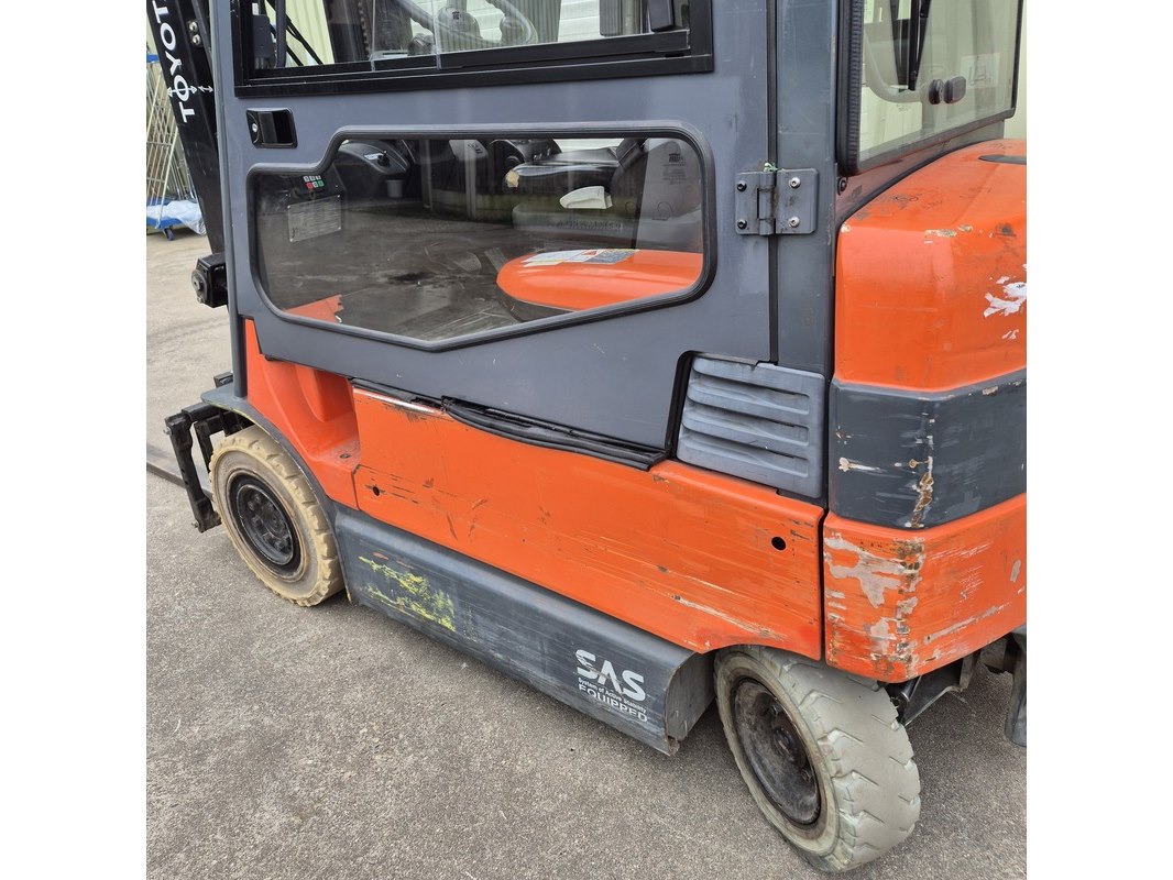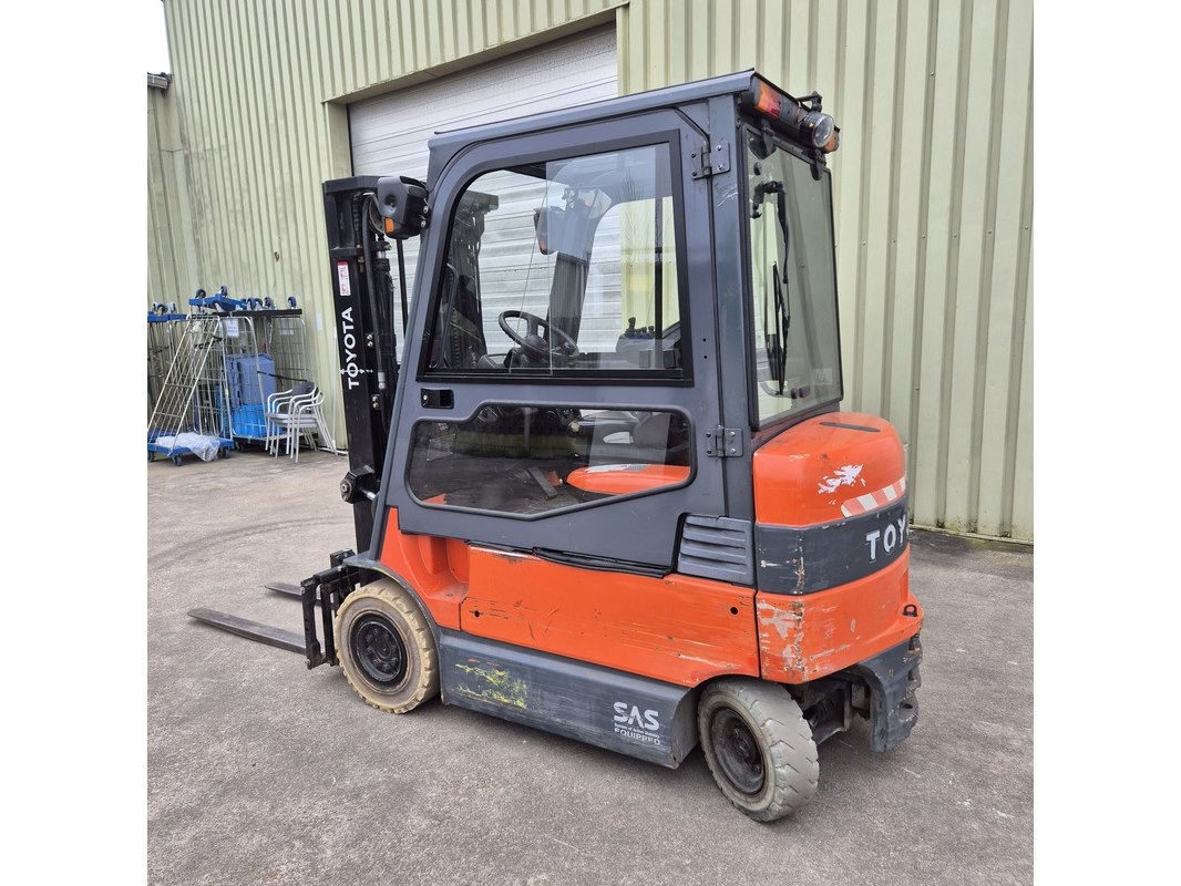 Merk: Toyota Product: Elektrische heftruck met acculader BouwJaar: 2013 Conditie: gebruikt Specificaties: Lepellengte ca. 120 cm. 3-Delige mast. Eigen gewicht ca. 3.140 kg. Max hefvermogen: 2500kg Aantal afgelezen draaiuren 6.377 uur. Laatste onderhoudsbeurt augustus 2025. Acculader: Exide-2100HP / type: HP80T100S Technische staat, werking en compleetheid onbekend.