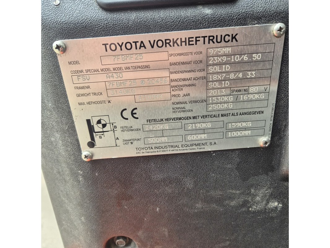 Elektrische heftruck met acculader, toyota, 7fbbmf25, 2013