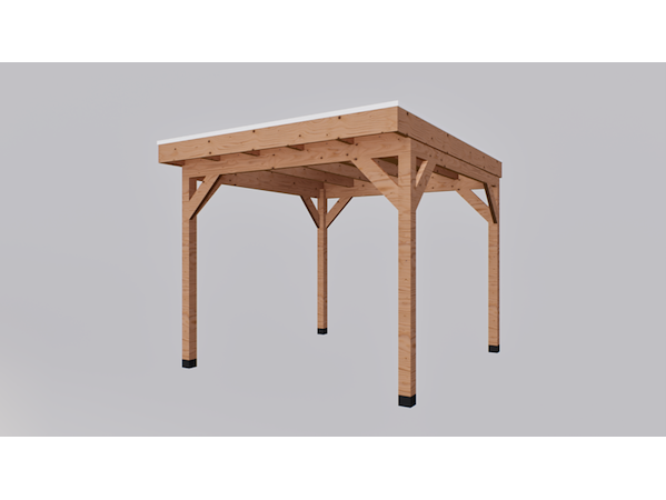 Merk: Verando Product: Douglas overkapping, 302 x 292 cm Materiaal: Douglas Conditie: nieuw Specificaties: De Verando Pure Douglas overkapping is een bouwpakket van fijn bezaagd Europees Douglas hout. Deze overkapping heeft een overstek. Het bouwpakket is al op maat gezaagd en wordt geleverd als een compleet pakket inclusief bevestigingsmaterialen en een duidelijke, stapsgewijze handleiding voor de montage. Het pakket bestaat uit: - Palen van 12 x 12 cm; - Een ringbalk van 5 x 15 cm; - Een balklaag van 5 x 15 cm; - Dakbeschot van 1,8 cm dik; - Boeiboorden van 2,2 x 20 cm; - Schoren van 5 x 15 cm; - Alle benodigde bevestigingsmaterialen; - Heldere en gebruiksvriendelijke montagehandleiding. De laatste afbeelding is ter illustratie van de houtkwaliteit. Totale hoogte: 260 cm Doorloop hoogte: 224 cm