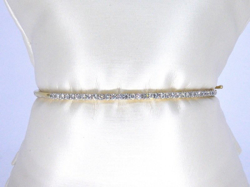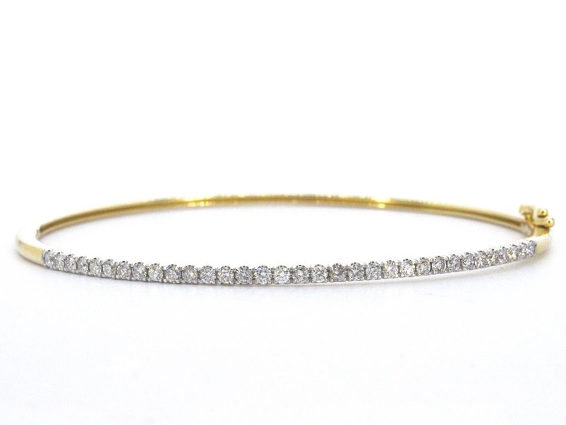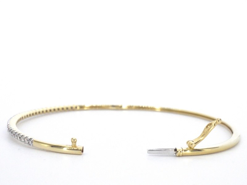 Product: Gouden bangle armband met natuurlijke briljant geslepen diamanten Specificaties: Diamant: Natuurlijk Aantal: 33 stuks Slijpvorm: Briljant geslepen Gewicht (carat): 0.60 carat Kleur: F-G Zuiverheid: VS-SI-P Slijpkwaliteit: Zeer mooi Juweel: Armband Gewicht: 5 gram Afmetingen/lengte: 6 x 5.3 cm Materiaal: 14K goud (585) Conditie: Nieuw Verpakking: Luxe sieradendoos Toelichting: De kwaliteit is overgenomen van het rapport behorend bij item. De waardebepaling is een beoordeling van een gecertificeerde diamantair, gebaseerd op consumentenprijzen. Consumentenprijs: € 5.460,-