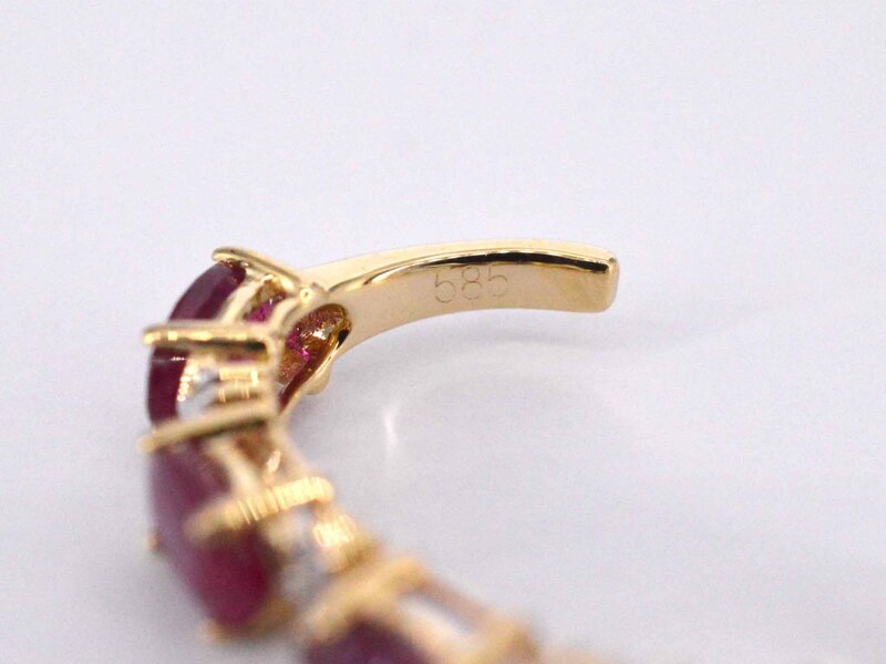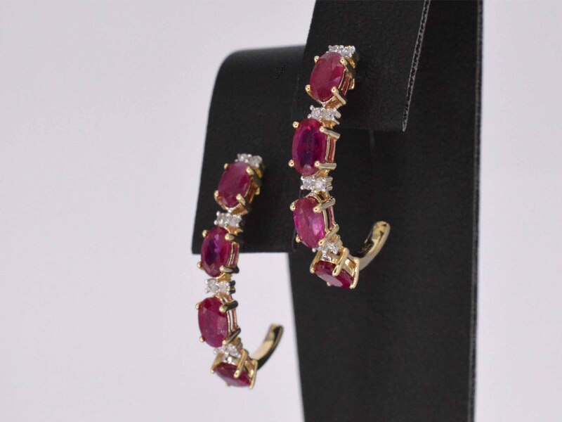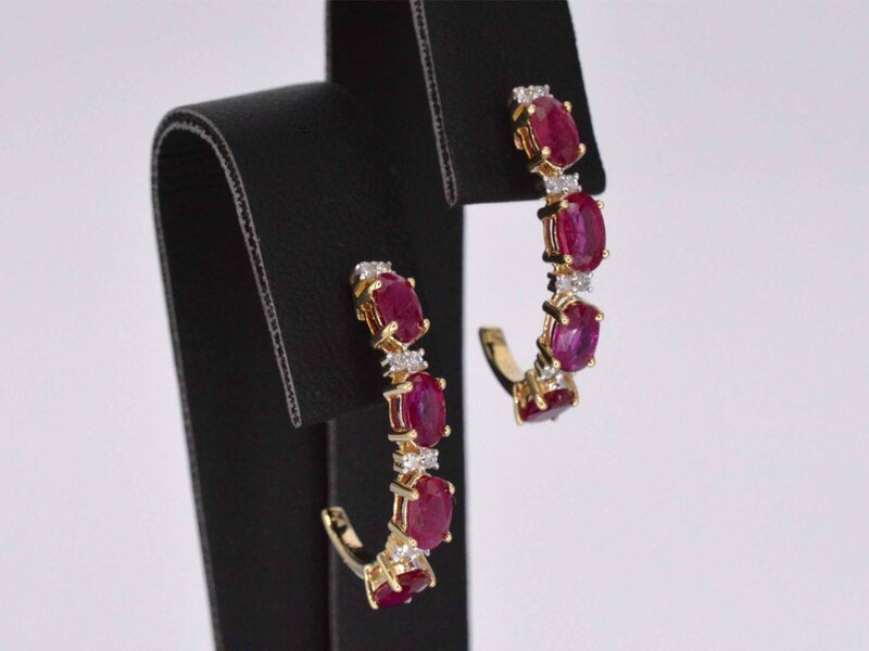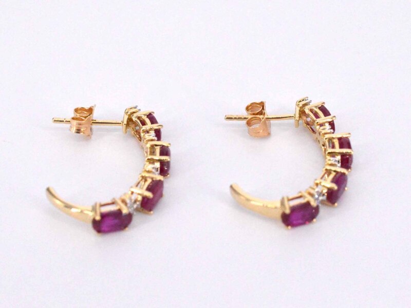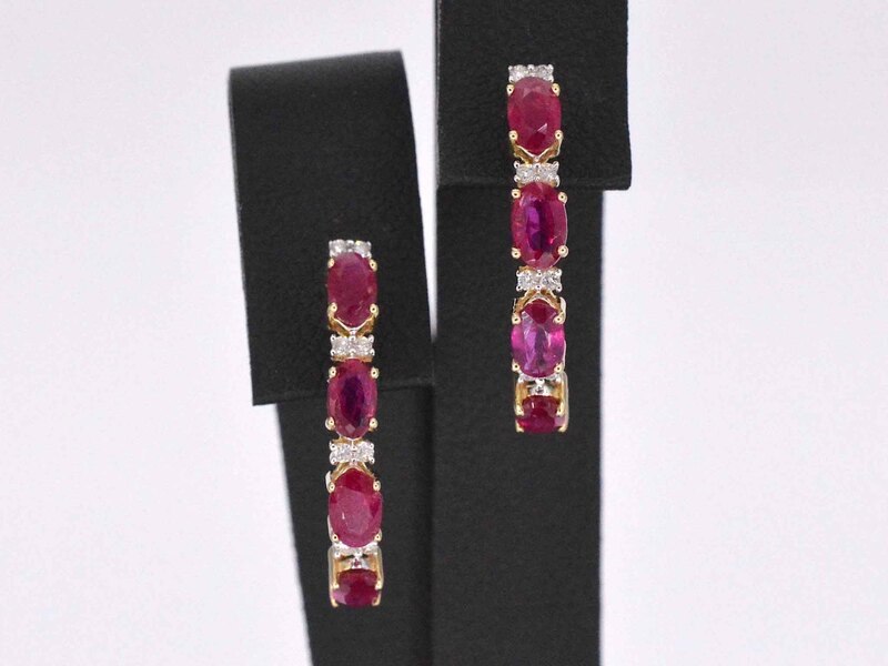 Product: Gouden oorbellen met diamanten en robijn Specificaties: Diamant: Natuurlijk Slijpvorm: Briljant geslepen Gewicht (carat): 0.15 carat Kleur: F-G Zuiverheid: SI-P Slijpkwaliteit: Zeer mooi Edelsteen: Robijn Slijpvorm: Ovaal geslepen Gewicht (carat): 3.00 carat Juweel: Oorbellen Gewicht: 2.6 gram Materiaal: 14 karaat (585) Conditie: Nieuw Verpakking: Luxe sieradendoos Toelichting: De kwaliteit is overgenomen van het rapport behorend bij item. De waardebepaling is een beoordeling van een gecertificeerde diamantair, gebaseerd op consumentenprijzen. Consumentenprijs: € 2.363,-