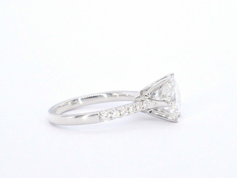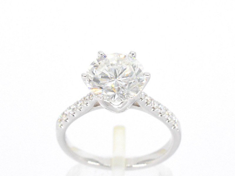 Product: Witgouden ring met een diamant van 3.00 carat Specificaties: Diamant: Natuurlijk Aantal: 1 stuk Slijpvorm: Briljant geslepen Gewicht (carat): 3.00 carat Kleur: E-F Zuiverheid: SI2 Slijpkwaliteit: Zeer mooi Diamant (secundair): Kleine diamanten Slijpvorm: Briljant geslepen Gewicht (carat): 0.30 carat totaal Kleur: F-G Zuiverheid: VS Juweel: Ring Gewicht: 4 gram Ringmaat (op maat gemaakt*): 53 (17 mm) Materiaal: 18K goud (750) Conditie: Nieuw Verpakking: Luxe sieradendoos Toelichting: De kwaliteit is overgenomen van het rapport behorend bij item. De waardebepaling is een beoordeling van een gecertificeerde diamantair, gebaseerd op consumentenprijzen. Consumentenprijs: € 93.000,-
