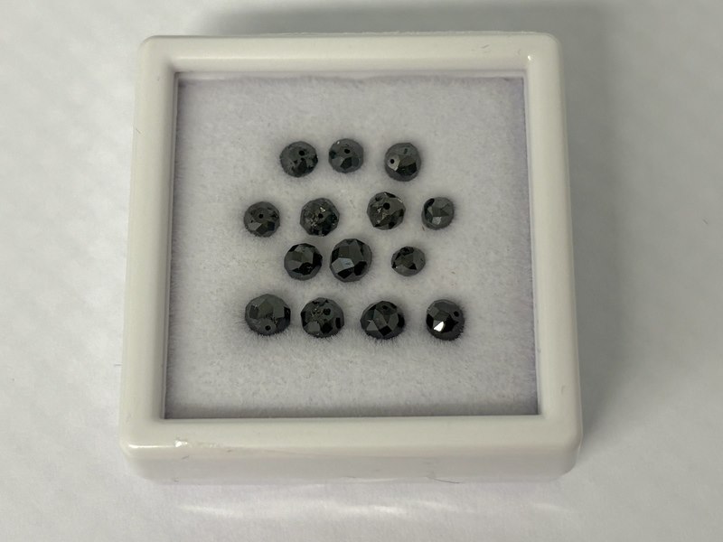 Product: Diamant - 5.20 carat zwarte natuurlijke diamant (enhanced) Specificaties: Diamant: Natuurlijk Aantal: 14 stuks Slijpvorm: Rond gefaceteerd Gewicht (carat): 5.20 carat Kleur: Zwart (enhanced) Zuiverheid: Opaak Slijpkwaliteit: Goed Extra informatie: Geboord (voor ketting) Conditie: Nieuw Verpakking: Edelsteendoosje Toelichting: De kwaliteit is overgenomen van het rapport behorend bij item. De waardebepaling is een beoordeling van een gecertificeerde diamantair, gebaseerd op consumentenprijzen. Consumentenprijs: € 2.280,-