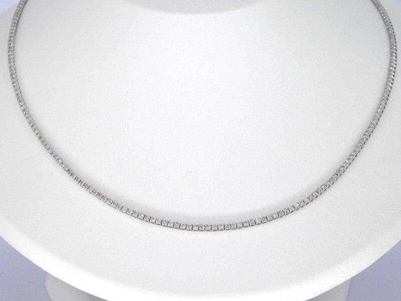 Product: Witgouden tenniscollier met diamanten 3.00 carat Specificaties: Diamant: Natuurlijk Slijpvorm: Briljant geslepen Gewicht (carat): 3.00 carat Kleur: F-G Zuiverheid: SI-P Slijpkwaliteit: Zeer mooi Juweel: Halsketting Gewicht: 9 gram Afmetingen/lengte: 43.5 cm Materiaal: 14 karaat (585) Conditie: Nieuw Verpakking: Luxe sieradendoos Toelichting: De kwaliteit is overgenomen van het rapport behorend bij item. De waardebepaling is een beoordeling van een gecertificeerde diamantair, gebaseerd op consumentenprijzen. Consumentenprijs: € 11.600,-